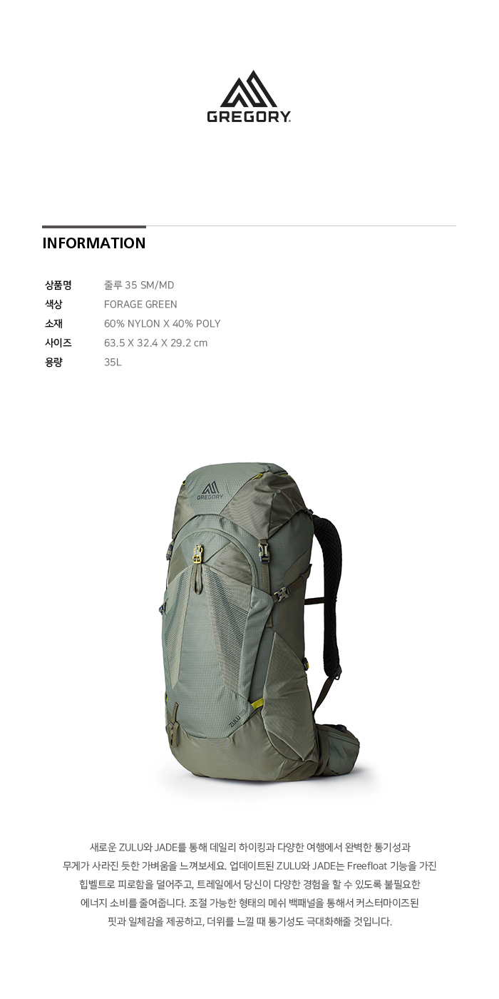 그레고리 줄루30 SM MD 포리지 그린