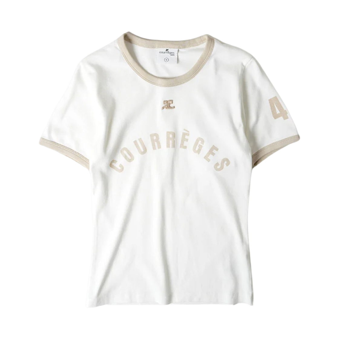 (W) Courreges Contrast Printed T-Shirt White Oatmeal