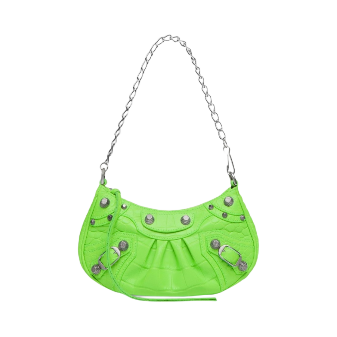 Balenciaga Le Cagole Mini Bag with Chain Crocodile Embossed Bright Green