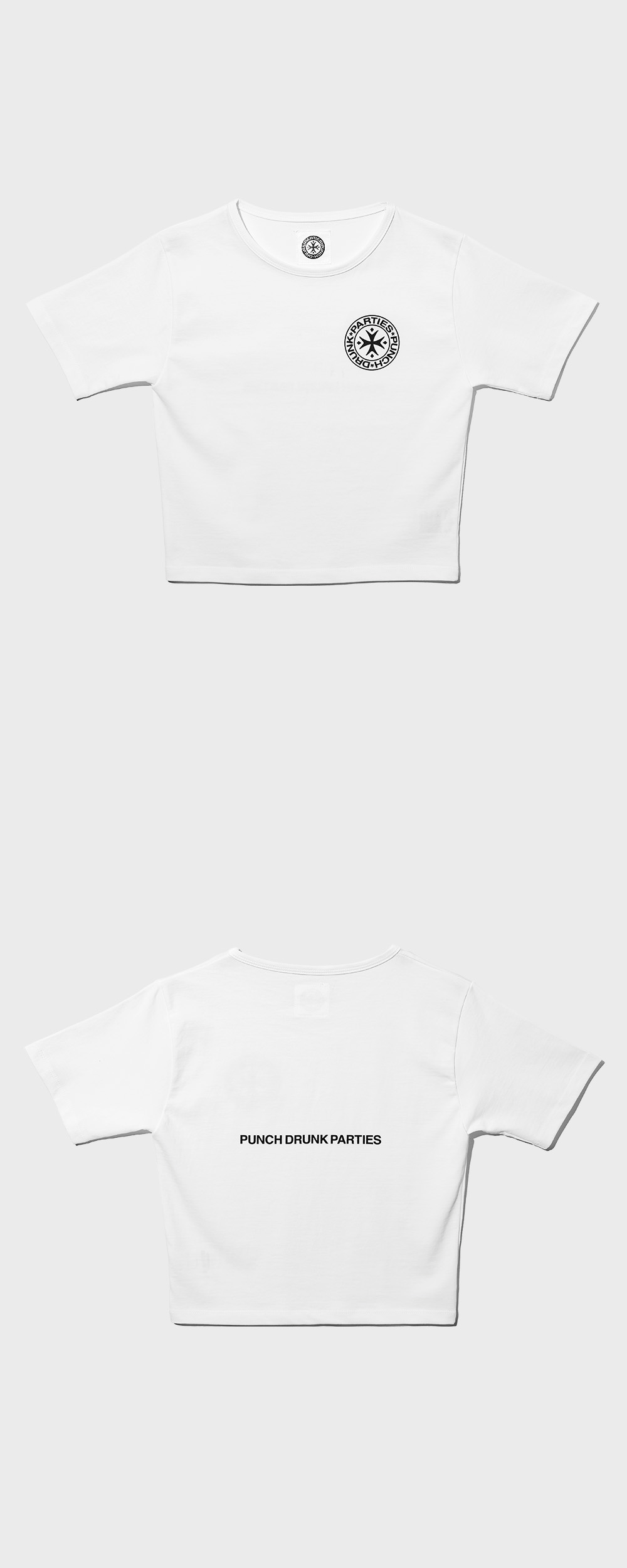 펀치 드렁크 파티즈 서클 로고 크롭 탑 오프화이트