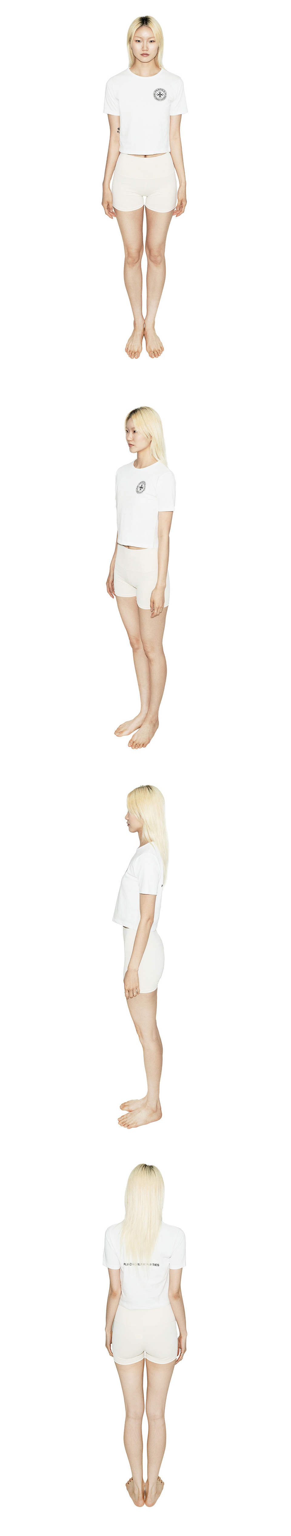 새로운 실루엣의 레귤러 크롭탑입니다. 여성용 단일 사이즈로 제작됩니다. - 100% Cotton - Regular Silhouette Size Guide Female / 174cm, 55kg, Size OS