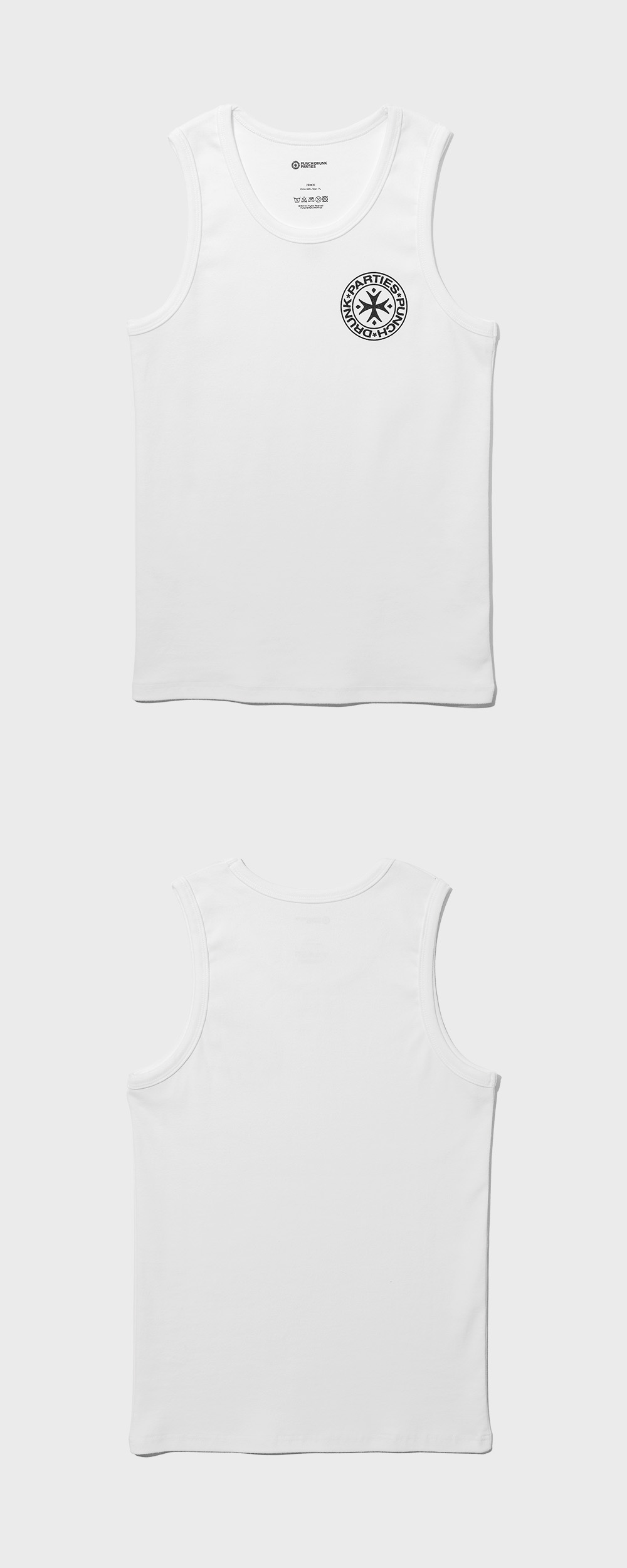 펀치 드렁크 파티즈 유니섹스 서클 로고 슬리브리스 오프화이트