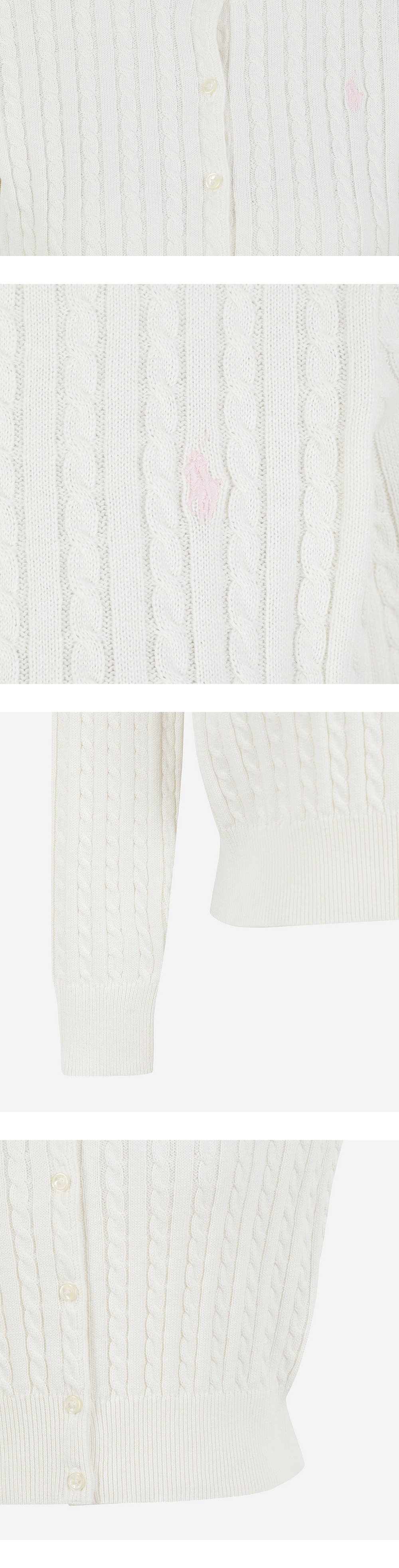 < KREAM은 랄프로렌 코리아 공식 파트너사로 모든 상품은 랄프로렌 코리아(유)에서 공급받은 정식 수입 제품입니다 > 수십 년 전 첫선을 보인 이래 아이코닉 아이템으로 자리한 케이블니트 카디건은 드레스에서 진, 티셔츠에 이르기까지 어디에나 폴로만의 시그니처 감각을 더합니다. - 면 100% - 세탁기 사용가능 - M 사이즈 바디 길이 - 47.0cm, 슬리브 길이 - 50.8cm - 왼쪽 체스트 포니 시그니처 자수 - 크루넥 - 버튼 플래킷 - 리브 조직 커프스, 롱 슬리브 - 리브 조직 헴