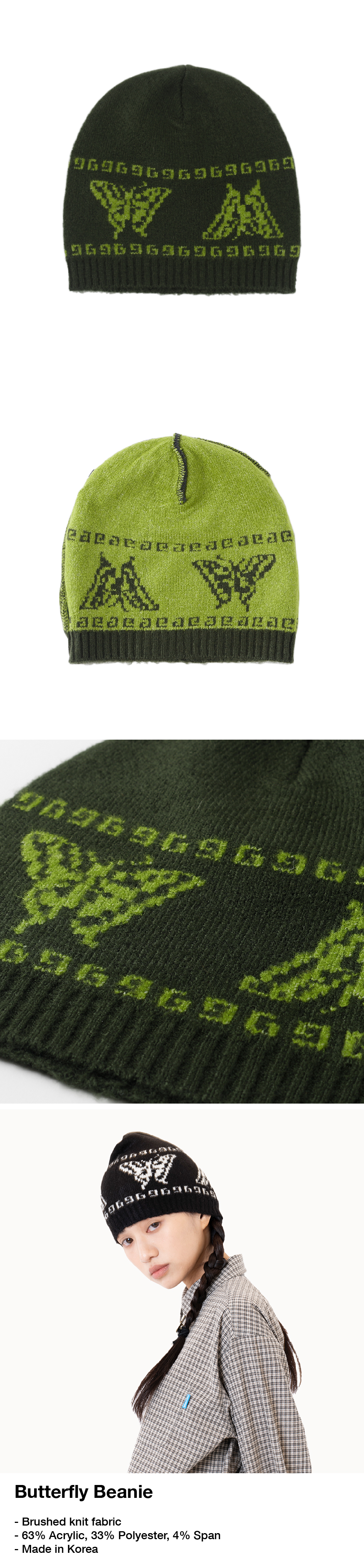 SUNNECT Butterfly Beanie Olive