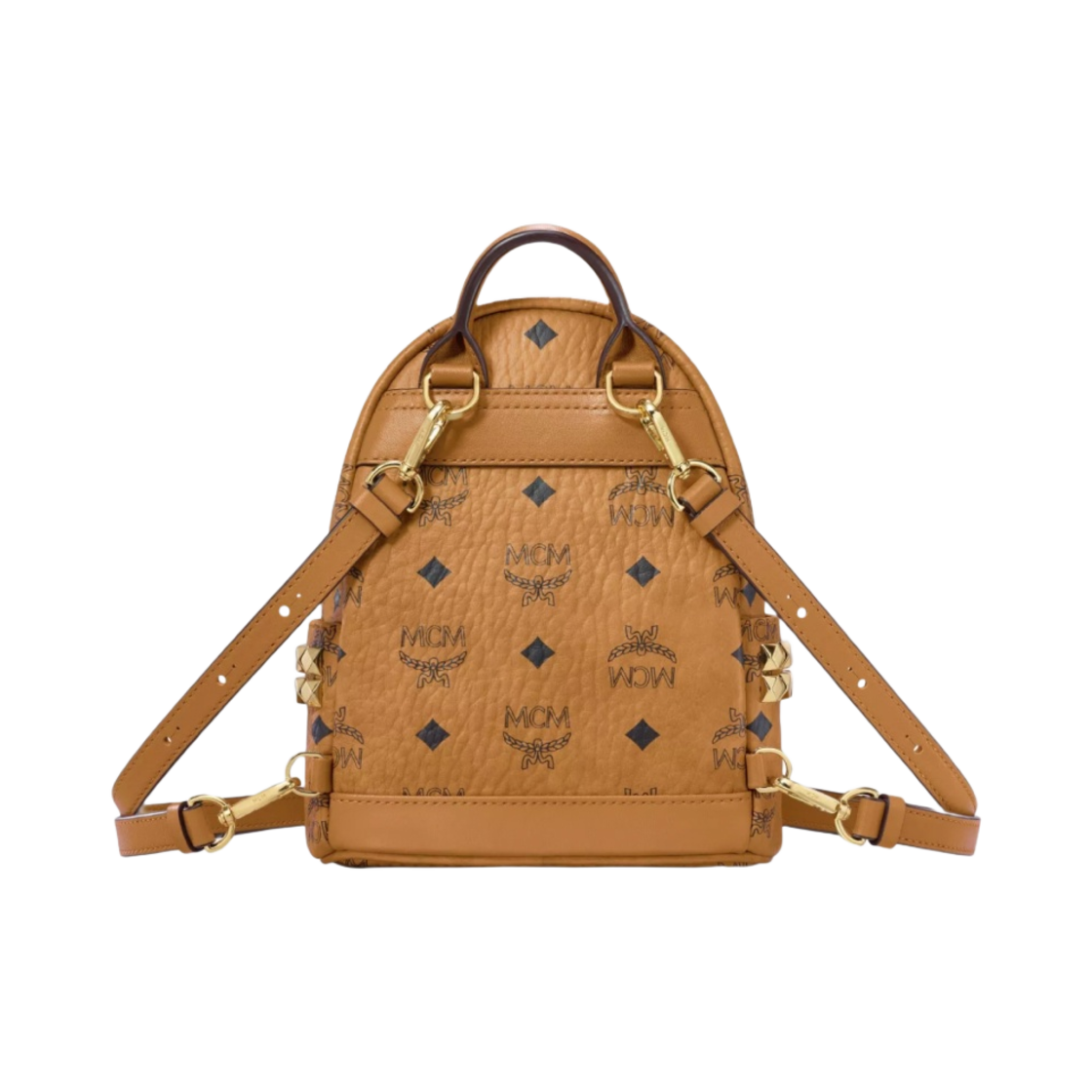 MCM Stark Bebe Boo Side Studs Backpack in Visetos X-Mini Cognac