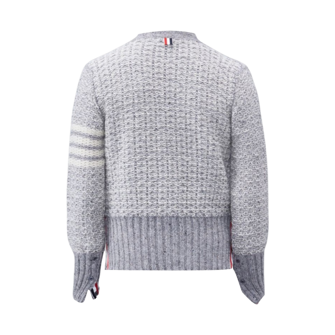 Thom Browne Mohair Tweed 4-Bar Classic V-Neck Cardigan Light Grey