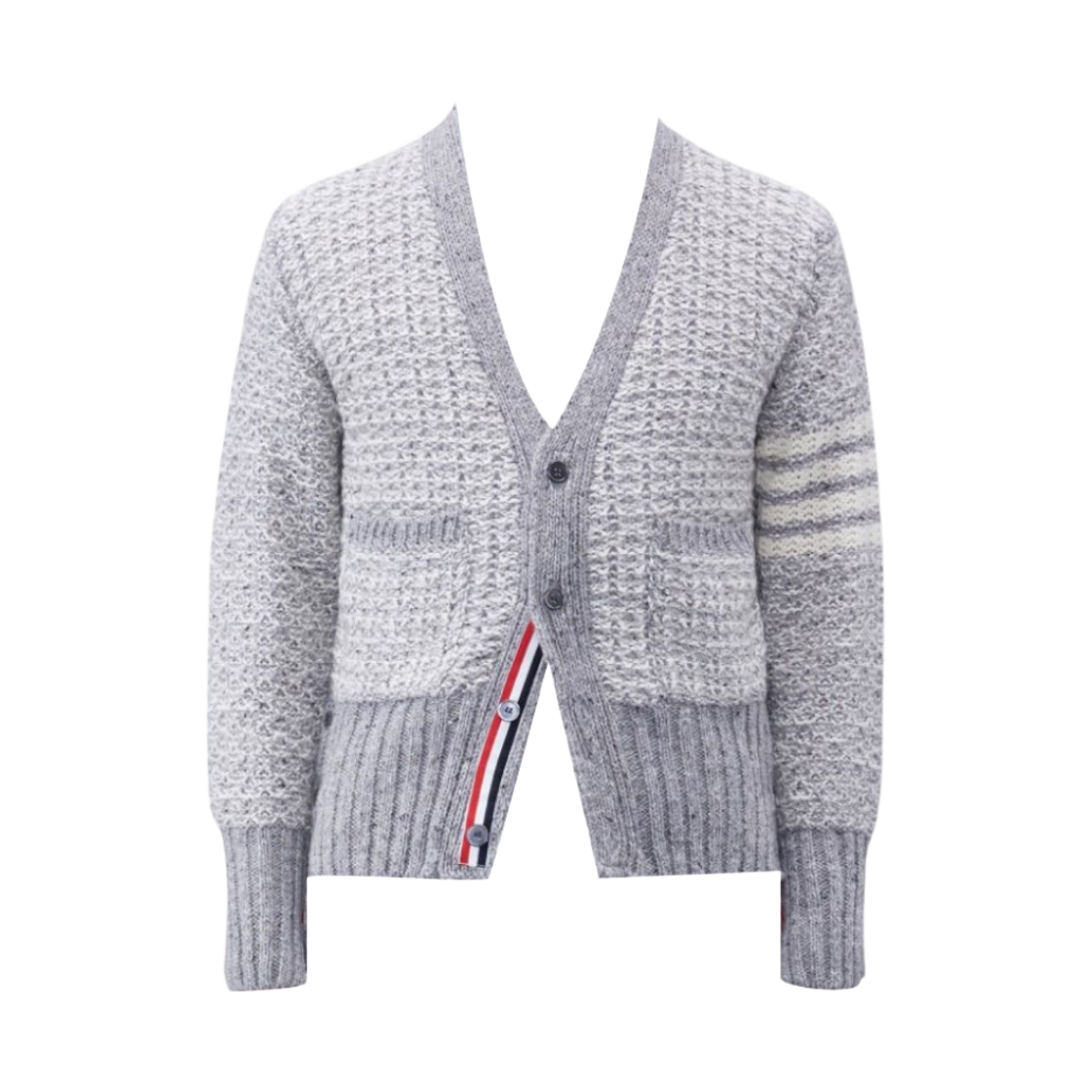 톰브라운 모헤어 트위드 사선 클래식 브이넥 가디건 라이트 그레이