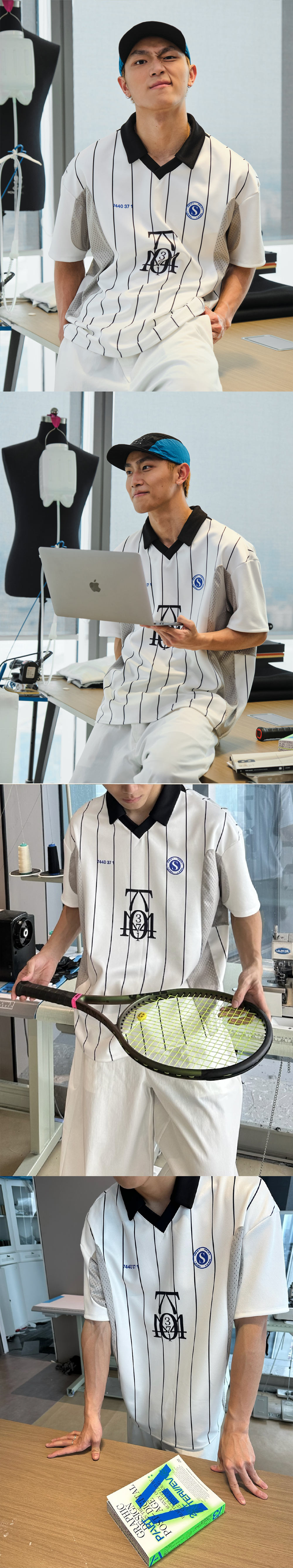 * 스탠다드한 블랙-화이트 스트라이프 디자인 * 암홀 하단 등 메쉬 컬러블럭 디테일 * 전후면부 심볼로고 * 실제 아웃도어 유니폼에 사용되는 폴리에스터 재질