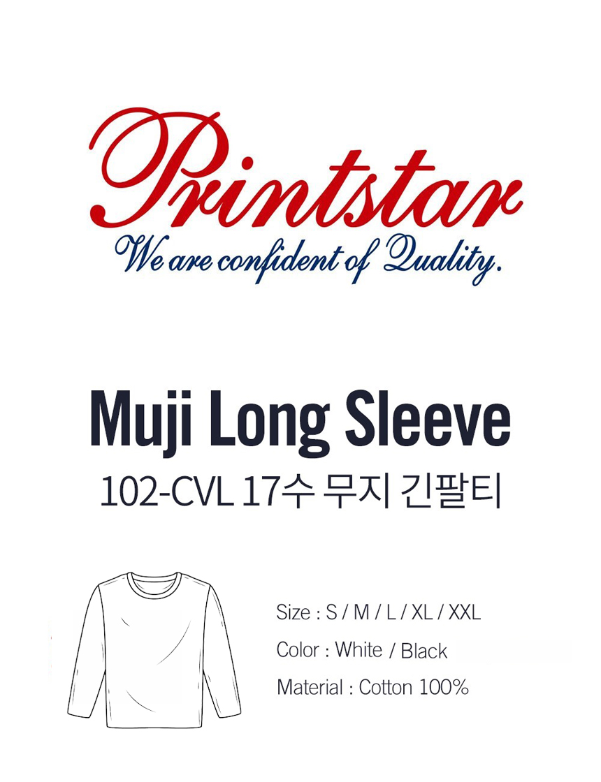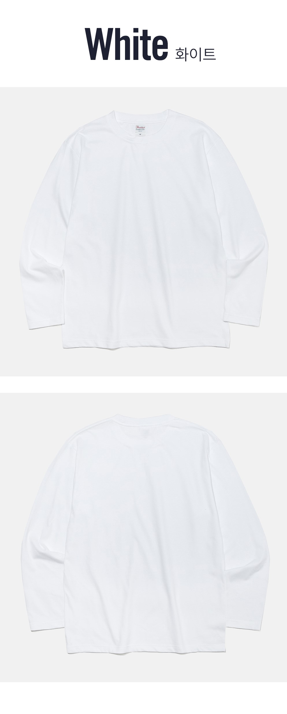 프린트스타 베이직 라운드 롱슬리브 티셔츠 화이트 (2팩)
