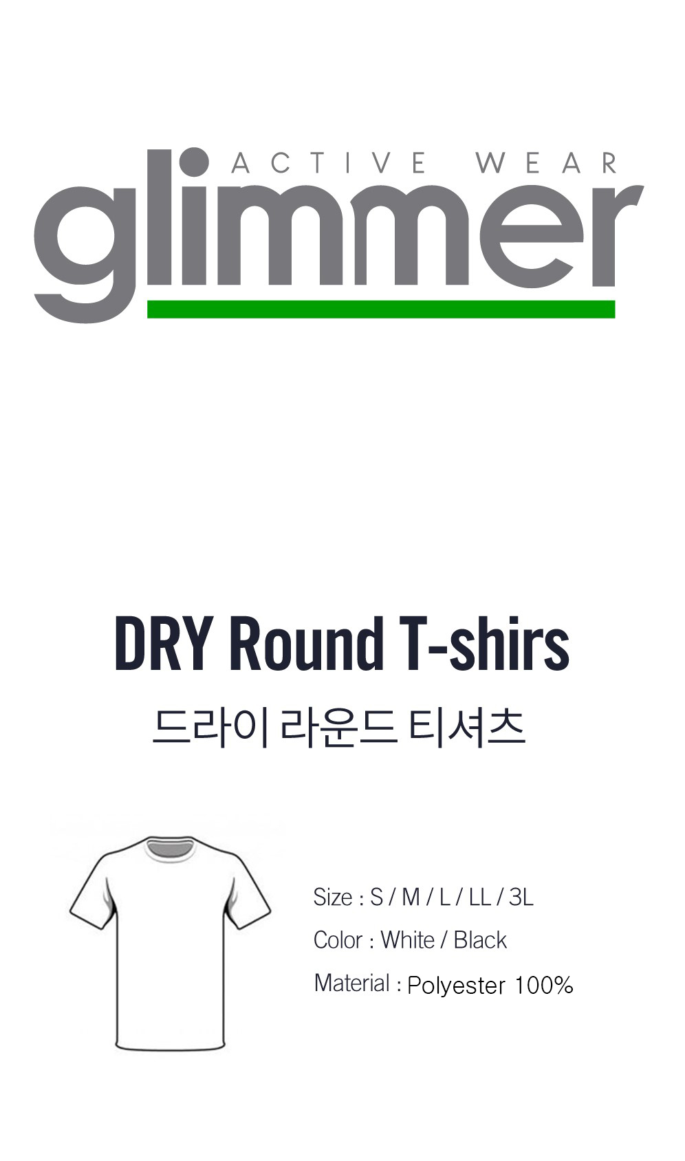 Glimmer Dry Round T-Shirt White (2Pack)