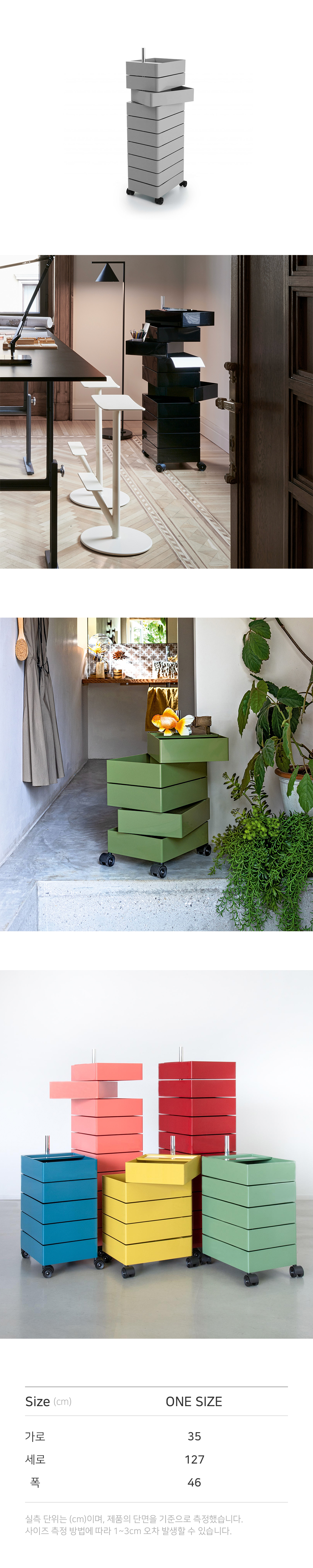 메탈 금속봉을 중심으로 모든 서랍장이 360° 회전이 가능하게 설계된 수납장입니다. 손으로 당기기만 하면 간단하게 내용물을 꺼내 사용할 수 있으며, 각종 소품, 서류함, 종류별로 분류 해야하는 약 등을 구비하기에 좋습니다. 5개의 서랍과 10개의 서랍 2가지 사이즈로 출시되어 용도에 따라 높이를 선택할 수 있습니다. [Notice] ㆍ한 칸당 하중 3kg으로 많은 물건 넣으실 경우 한쪽으로 쳐질 수 있습니다. ㆍ제품의 설계 구조상 서랍의 단차가 일정하지 않을 수 있습니다. ㆍ플라스틱 제품 소재 및 생산 공정 특성상 미세 스크래치, 사출자국 등이 있을 수 있습니다.