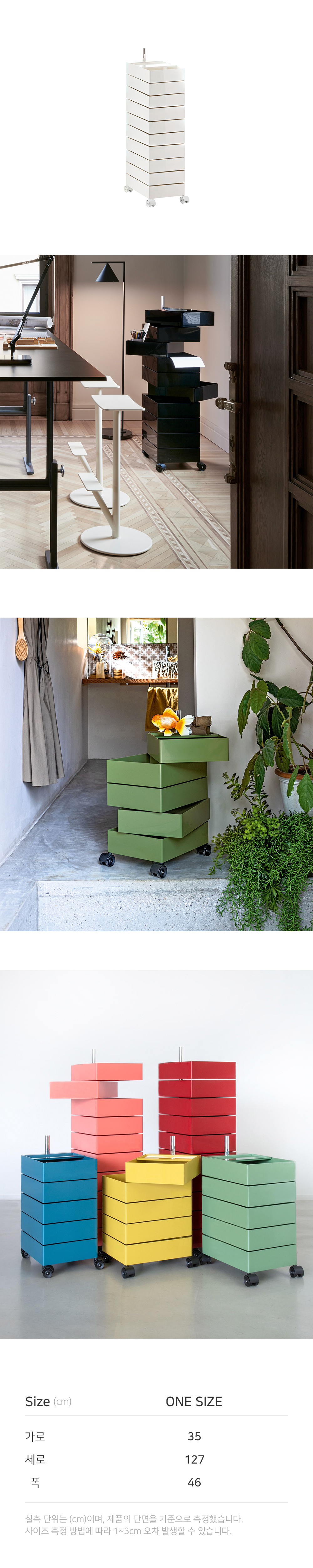 메탈 금속봉을 중심으로 모든 서랍장이 360° 회전이 가능하게 설계된 수납장입니다. 군더더기 없는 심플한 디자인에 바퀴를 달아 실용성을 더했습니다. 5개의 서랍과 10개의 서랍 두 가지 사이즈로 출시되어 용도에 따라 높이를 선택할 수 있습니다. 컬러 또한 다양한 옵션을 제공합니다. [Notice] ㆍ한 칸당 하중 3kg으로 많은 물건 넣으실 경우 한쪽으로 쳐질 수 있습니다. ㆍ제품의 설계 구조상 서랍의 단차가 일정하지 않을 수 있습니다. ㆍ플라스틱 제품 소재 및 생산 공정 특성상 미세 스크래치, 사출자국 등이 있을 수 있습니다.