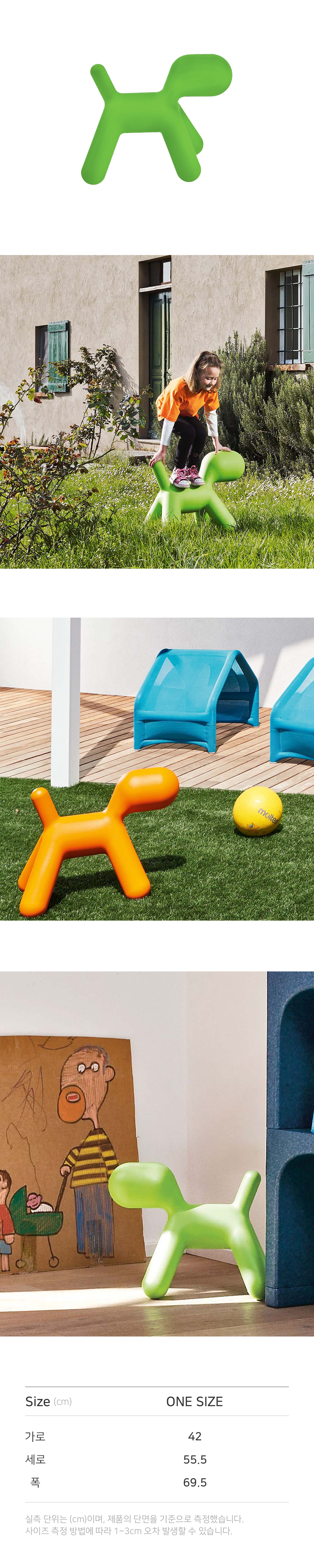 강아지 형태를 심플하게 표현한 오브제입니다. 합성 소재 플라스틱으로 제작되어 관리가 쉬우며, 실내외에서 모두 사용 가능합니다.