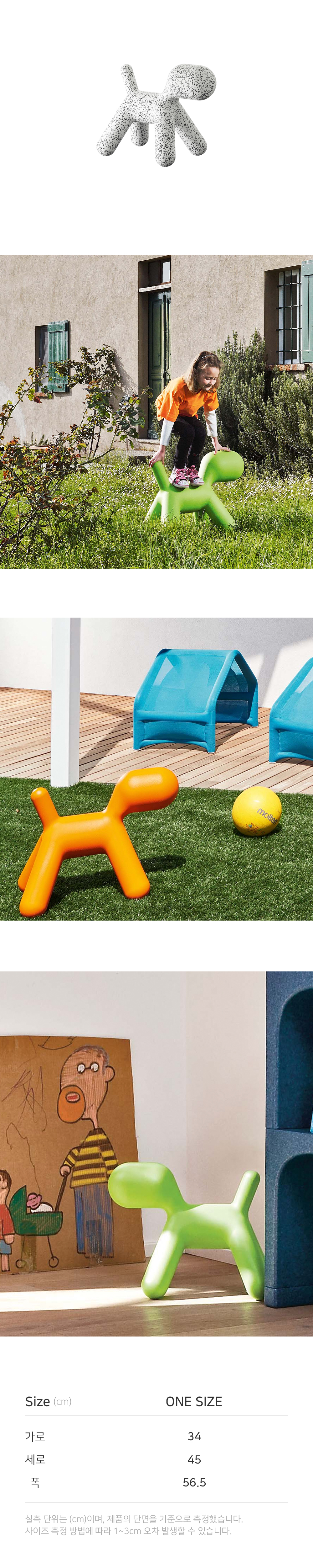 강아지 형태를 심플하게 표현한 오브제입니다. 합성 소재 플라스틱으로 제작되어 관리가 쉬우며, 실내외에서 모두 사용 가능합니다.