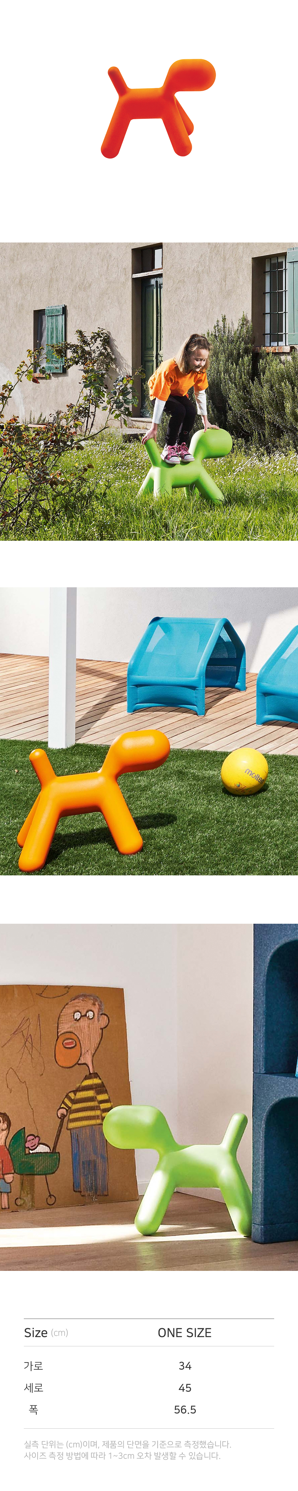 강아지 형태를 심플하게 표현한 오브제입니다. 합성 소재 플라스틱으로 제작되어 관리가 쉬우며, 실내외에서 모두 사용 가능합니다.