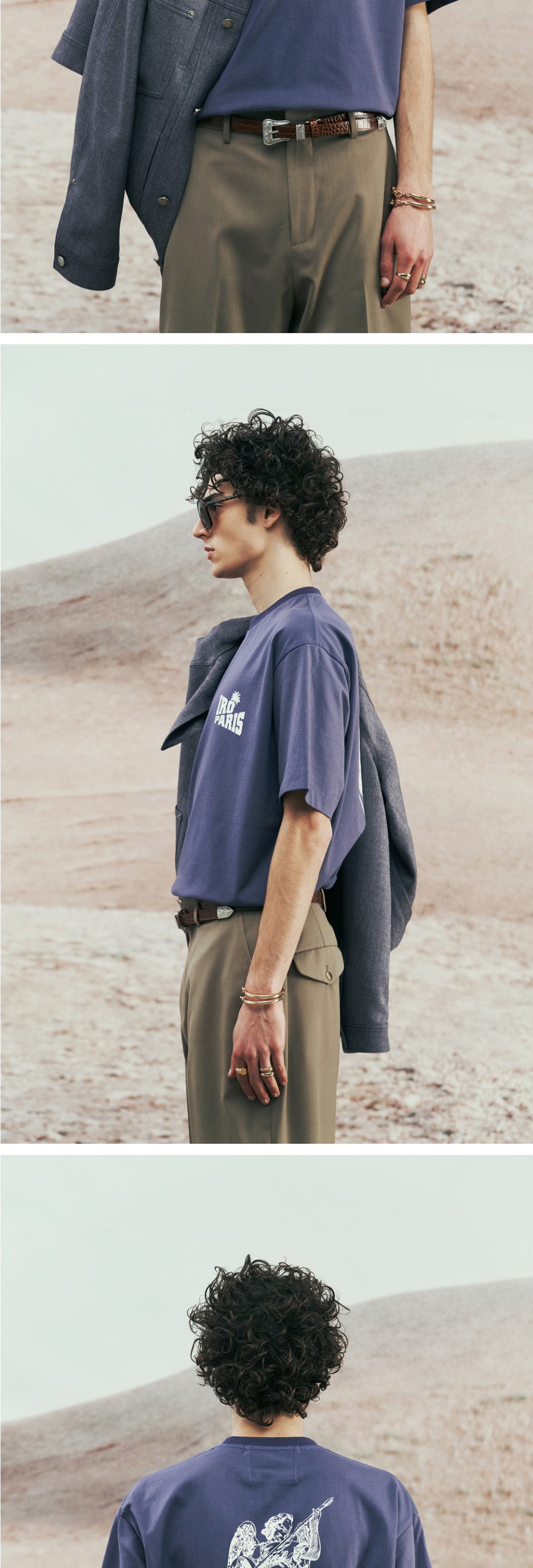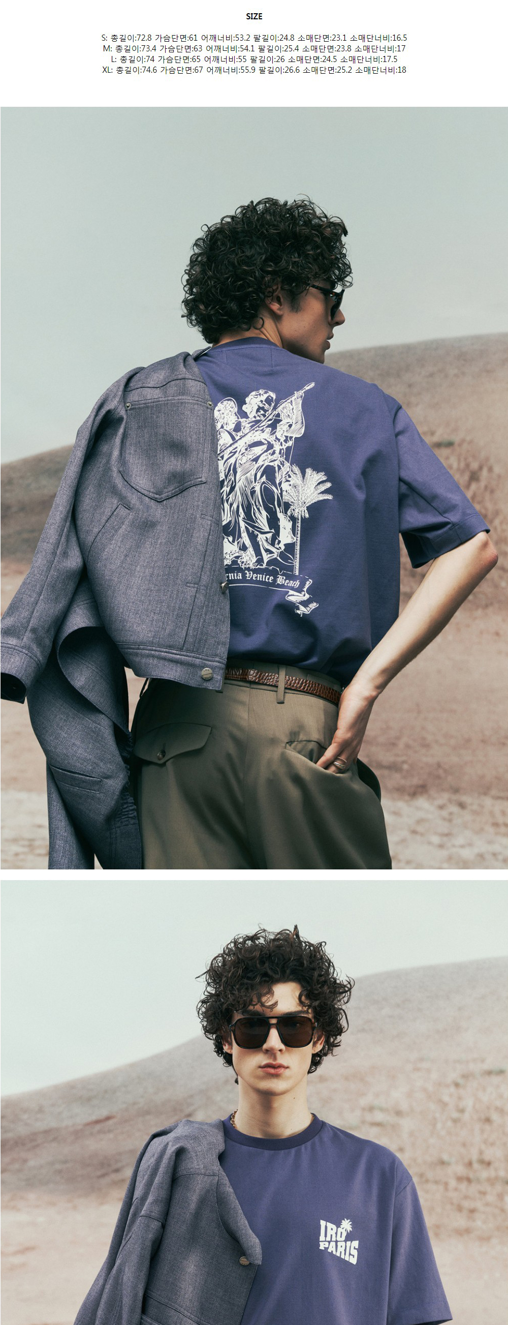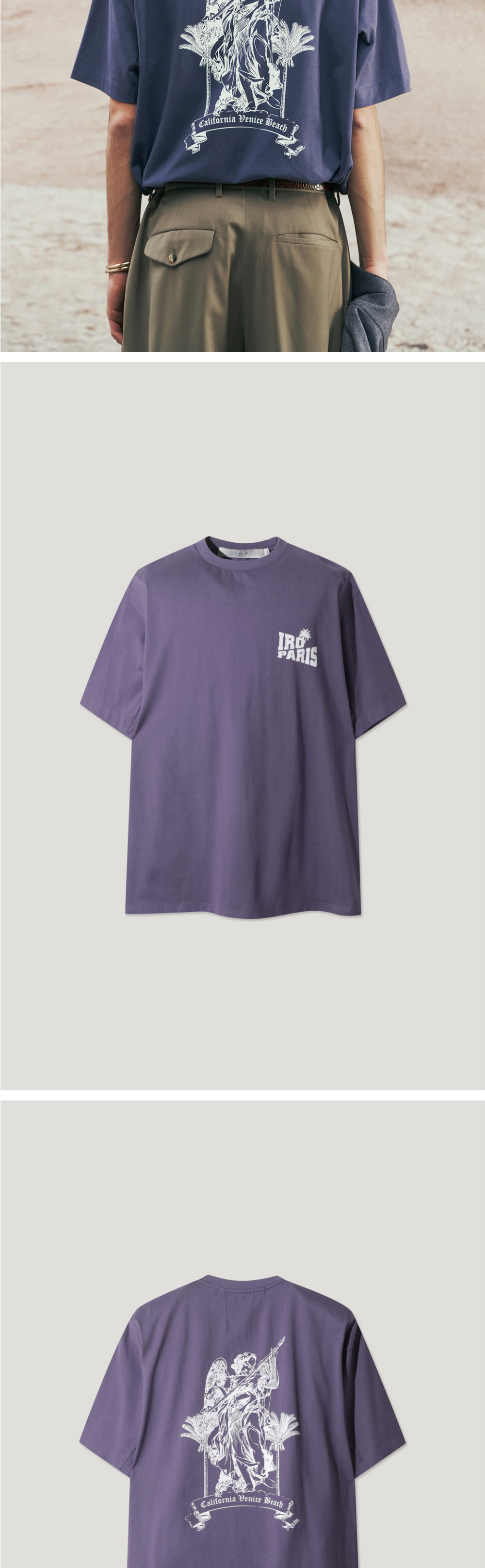이로 팜트리 그래픽 세미오버 코튼 티셔츠 퍼플