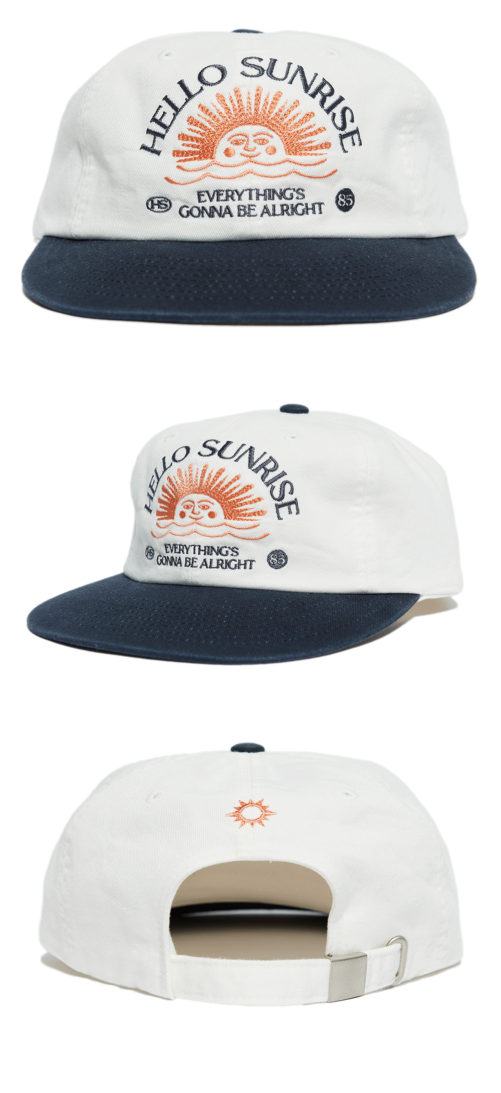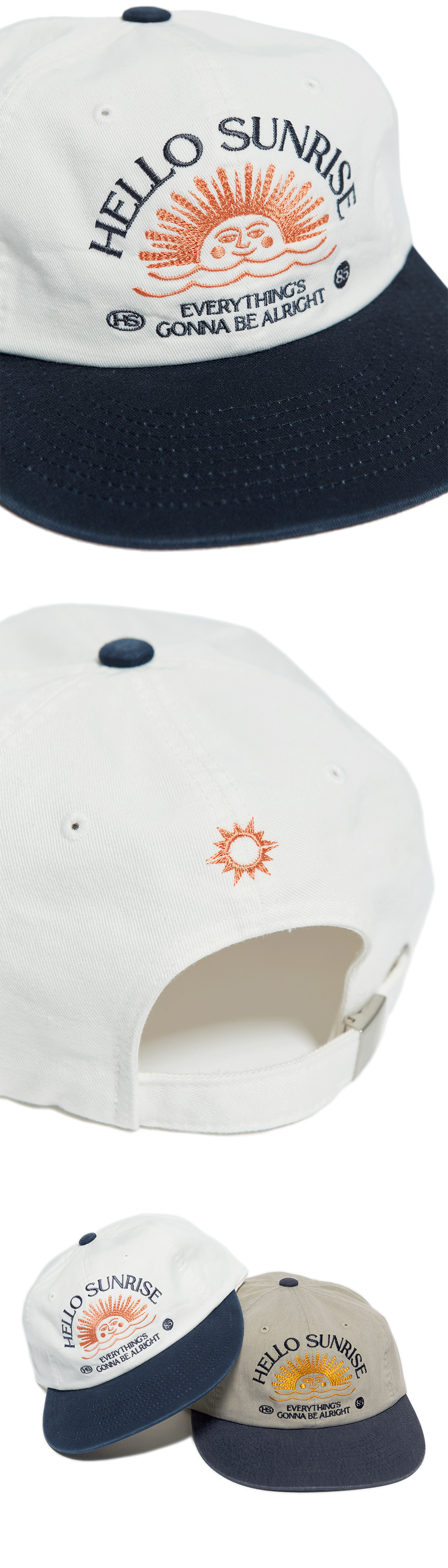 헬로선라이즈 워시드 HS 아치로고 6패널 캡 아이보리 & 네이비