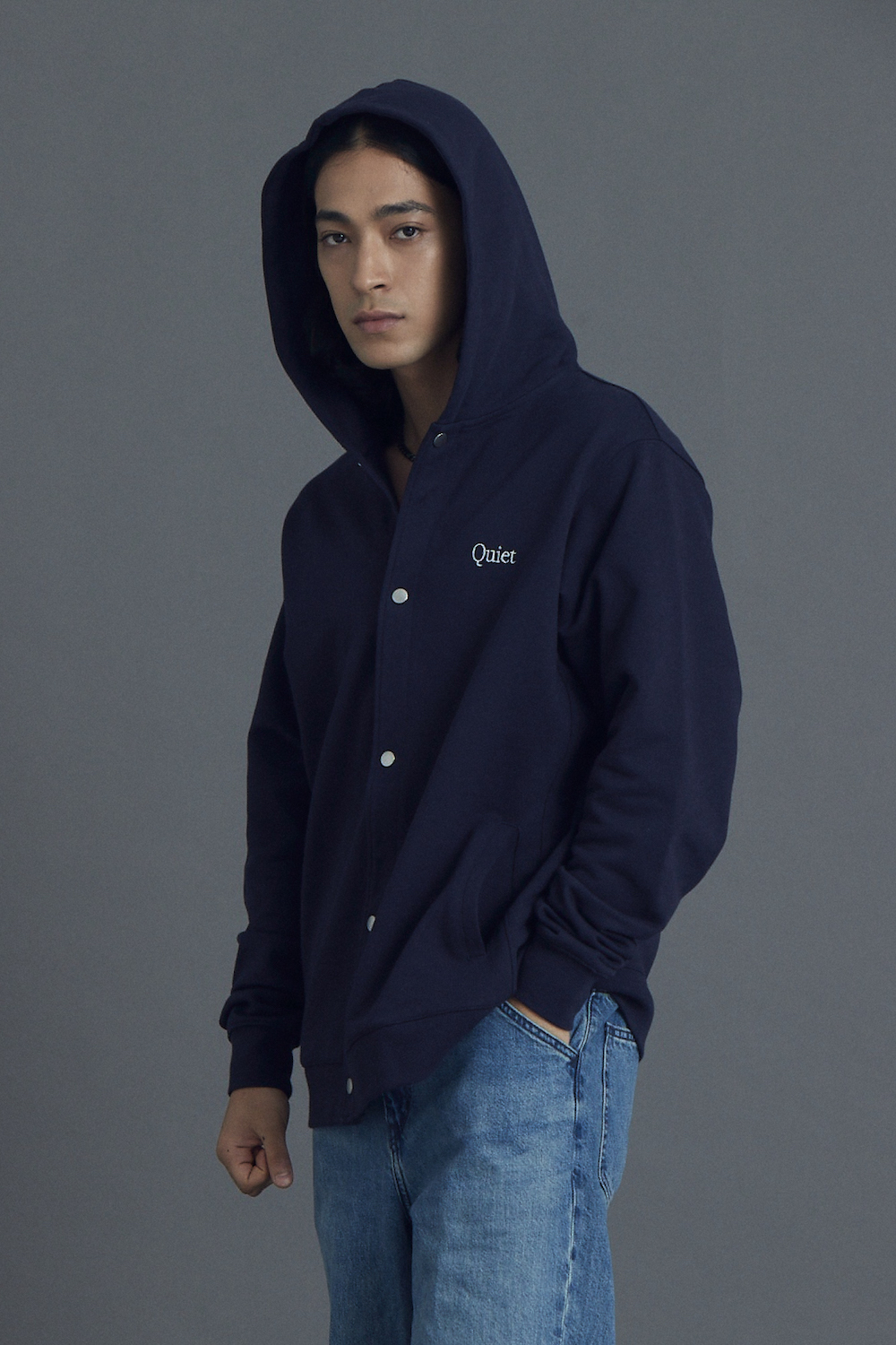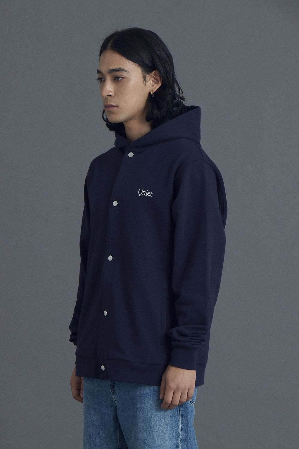 부드러운 촉감의 저지 코튼 스냅 후디 루즈핏 실루엣 헤링본테잎으로 목늘어남 방지 * M~XL size