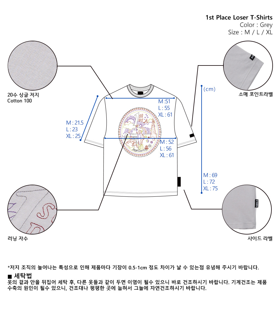 아조바이아조 1st 플레이스 루저 티셔츠 그레이
