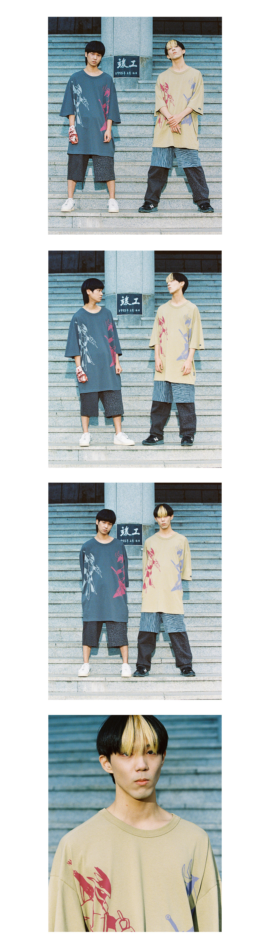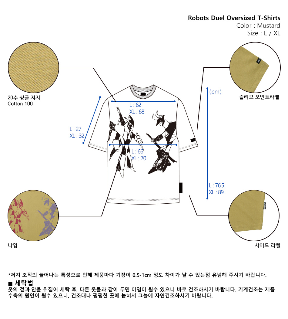 아조바이아조 로보트 듀얼 오버사이즈 티셔츠 머스타드