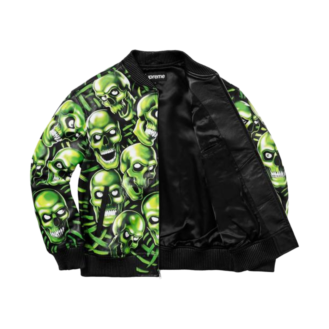 슈프림 스컬 파일 레더 봄버 자켓 그린 - 18SS