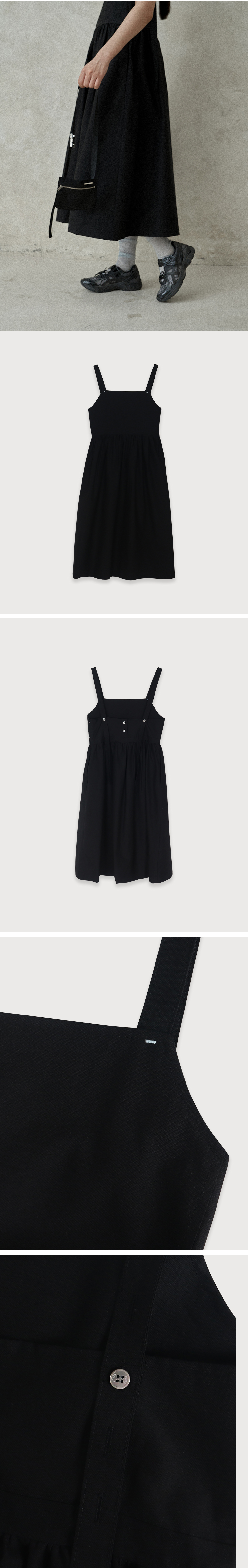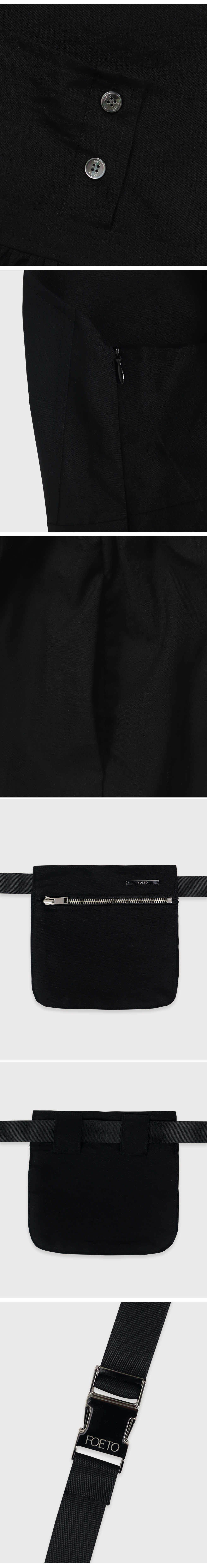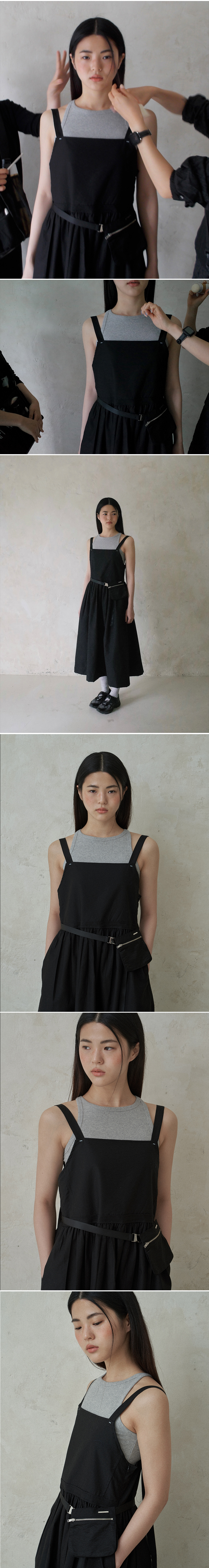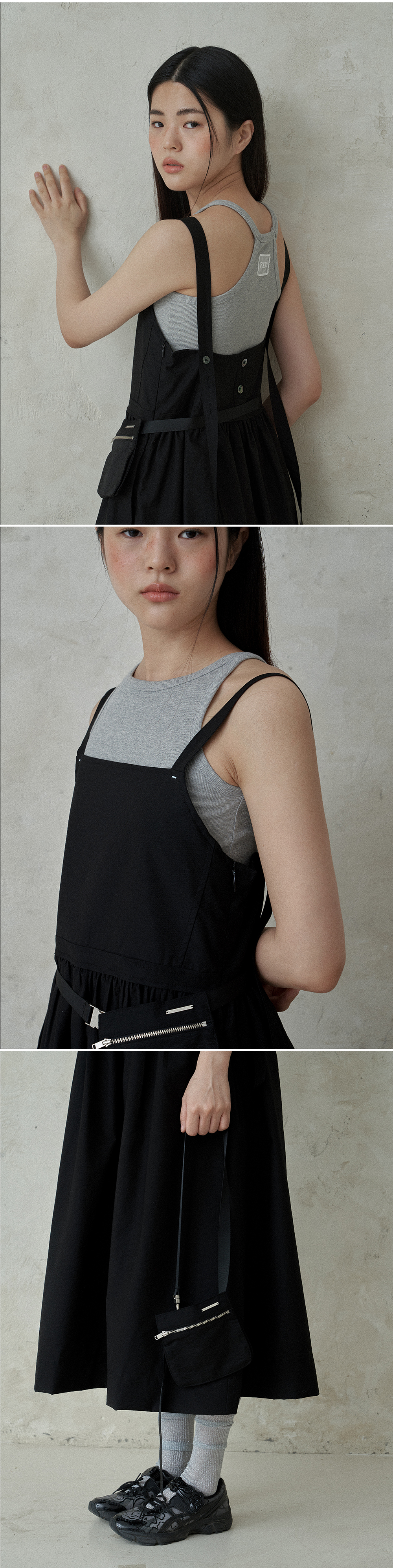 피크닉, 여행등 써머 시즌에 잘 어울리는 귀여운 무드의 드레스입니다. 웨이스트 타입/ 크로스타입 모두 즐기실 수 있는 귀여운 크로스 가방과 세트인 제품입니다 단단하게 실루엣이 잡히는 코팅된듯한 느낌을 주는 코튼혼방 소재로 제작되었습니다. 부드러운 안감 라이닝으로 비침을 한층 더 방지하였습니다. 오버롤 타입의 원피스로 백라인의 버튼으로 기장감 조절이 가능하며 중앙에 잡아준 허리선 디테일과 스티치라인, 스커트라인에 잡아준 셔링 디테일로 풍성함이 느껴집니다. 스커트 사이드 라인에 포켓 디테일을 더해 활동성을 높여주었습니다. 어깨 스트링에 더해준 컬러 바텍 스티치 디테일이 위트있는 포인트가 되어주며 백 라인역시 절개선과 스티치 디테일 그리고 로고가 각인된 자개 버튼들을 달아주어 포인트를 주었습니다. 롱한 기장감과 풍성한 아웃핏이 귀여우면서도 발랄한 분위기를 느끼게합니다. 세트로 준비된 미니백은 입체감이 느껴져 수납성이 우수하며 로고가 각인된 실버바와 버클에도 레이저 로고 작업으로 포인트를 주었습니다.