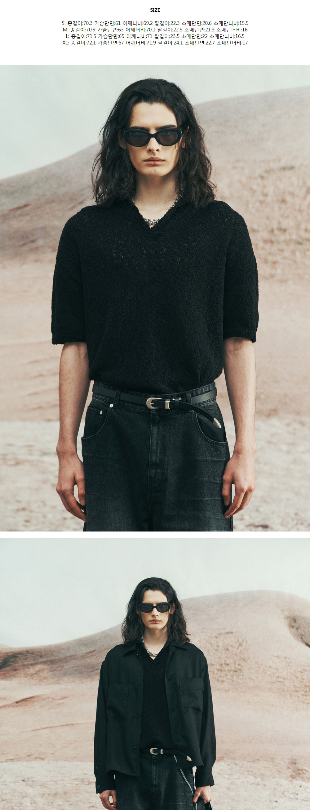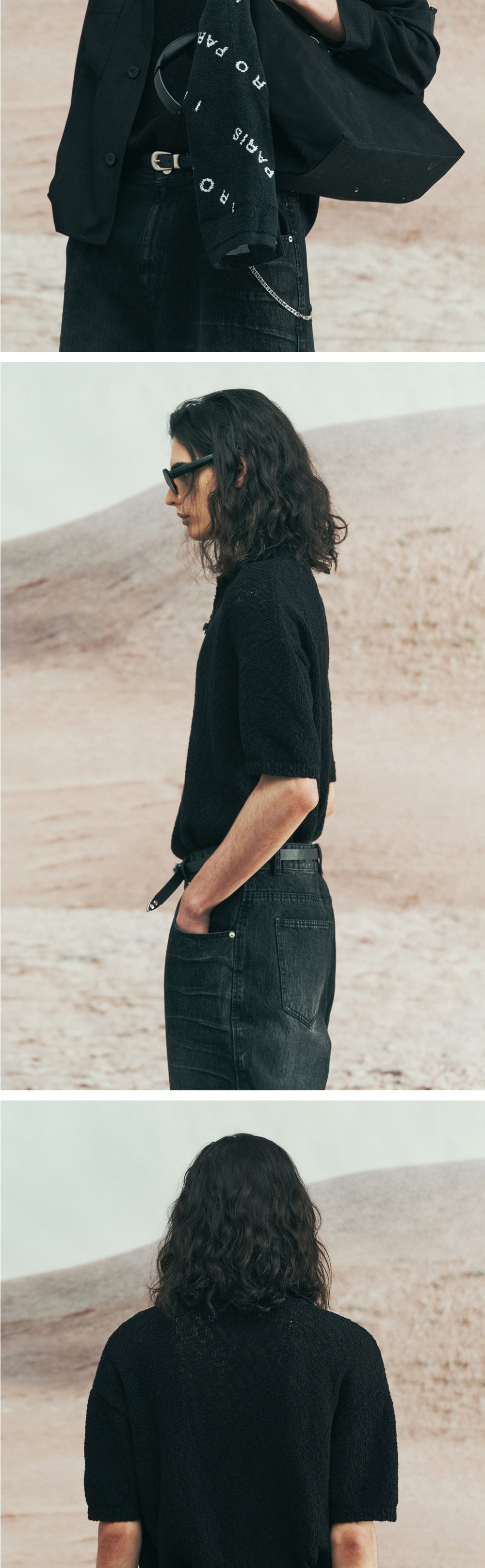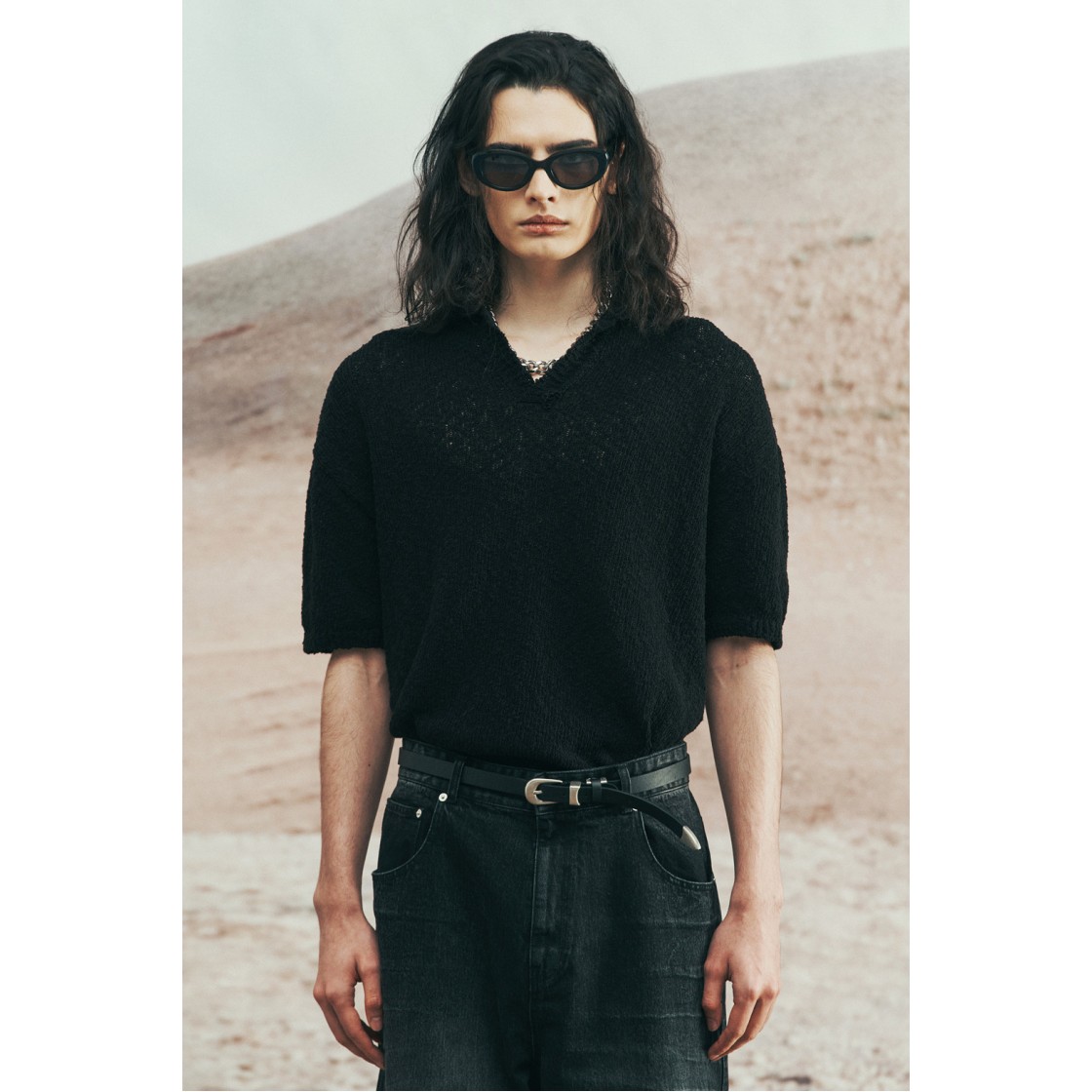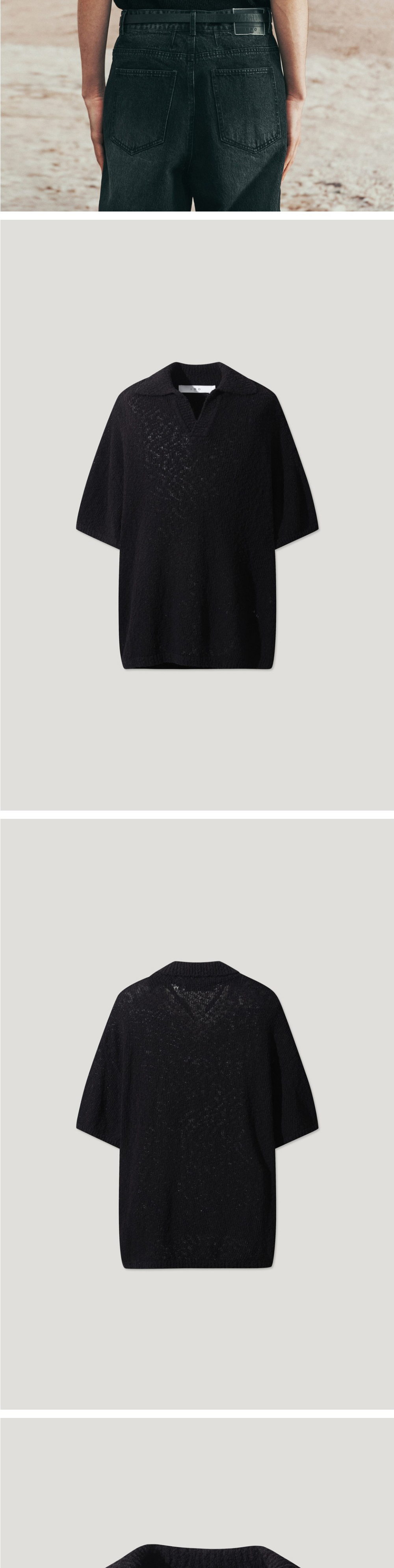 이로 트로피칼 코튼 혼방 카라 니트 블랙
