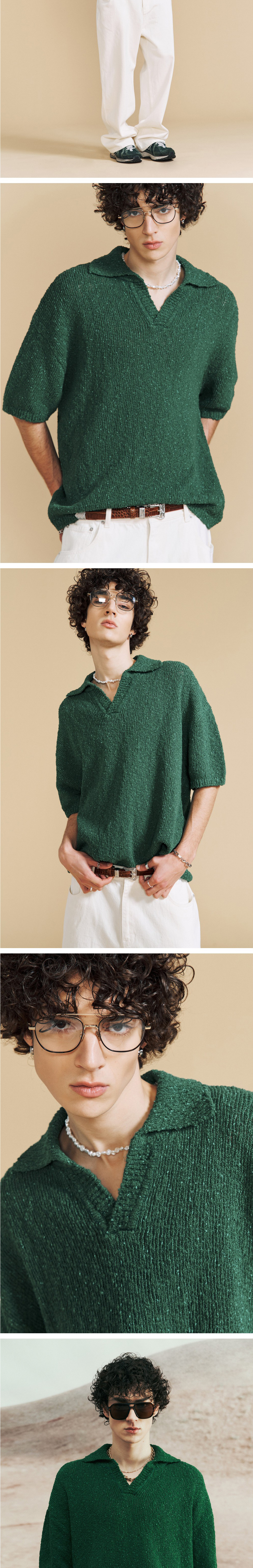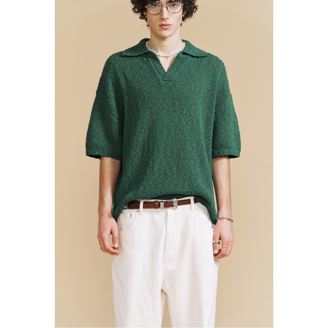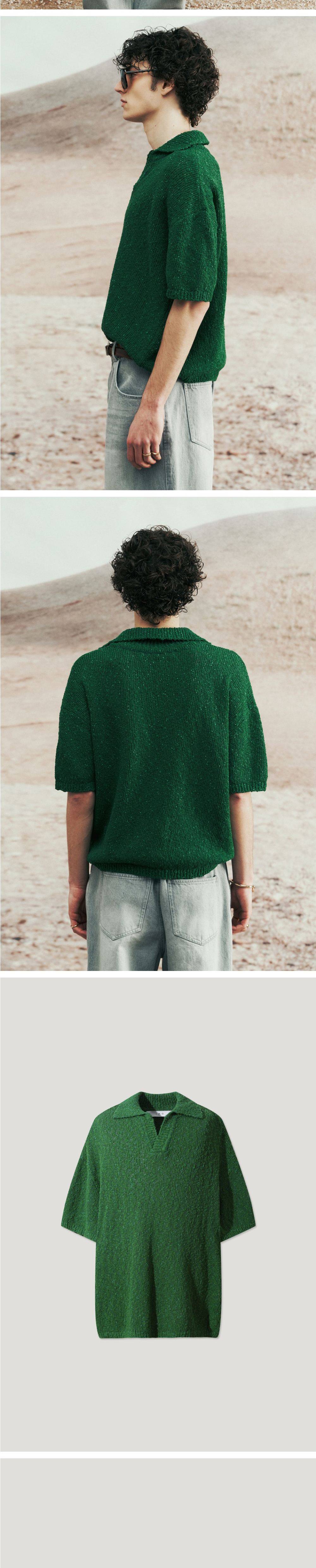 이로 트로피칼 코튼 혼방 카라 니트 그린
