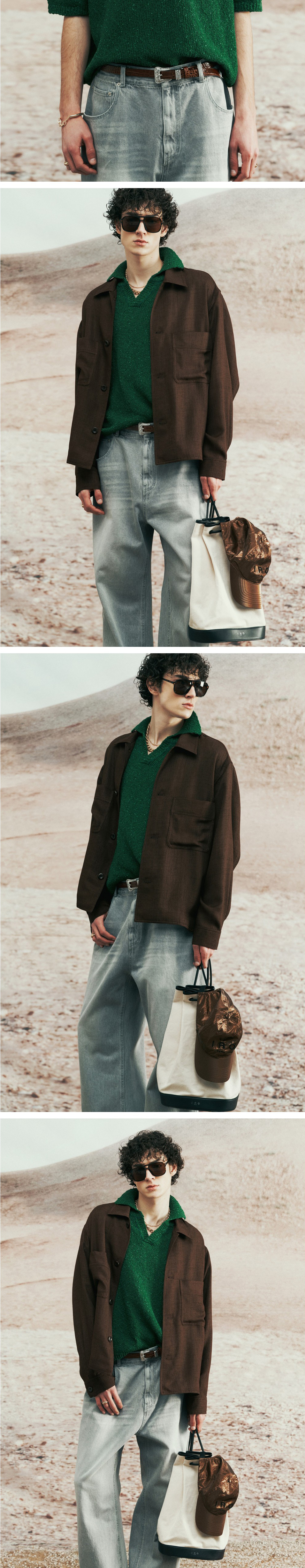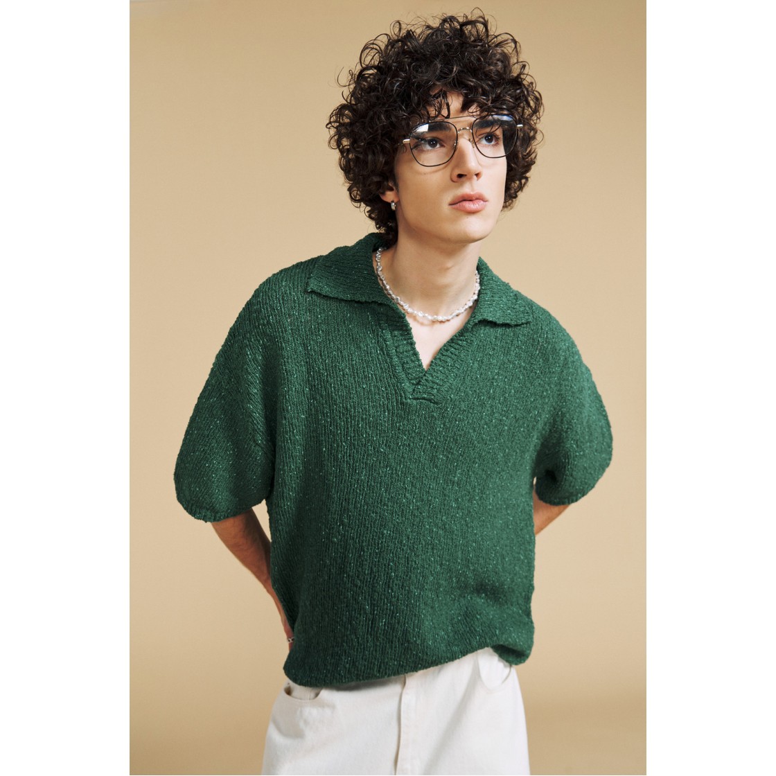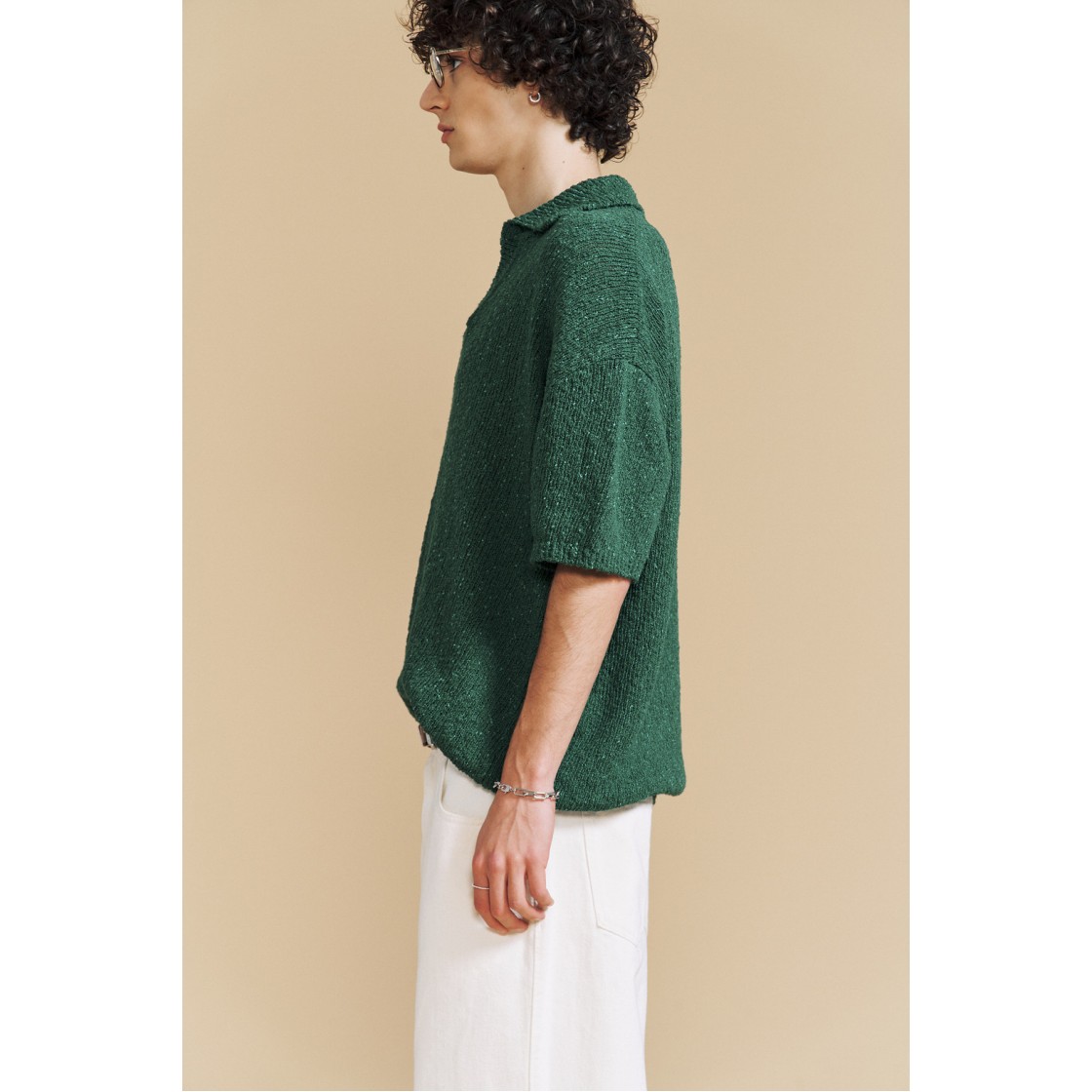 이로 트로피칼 코튼 혼방 카라 니트 그린