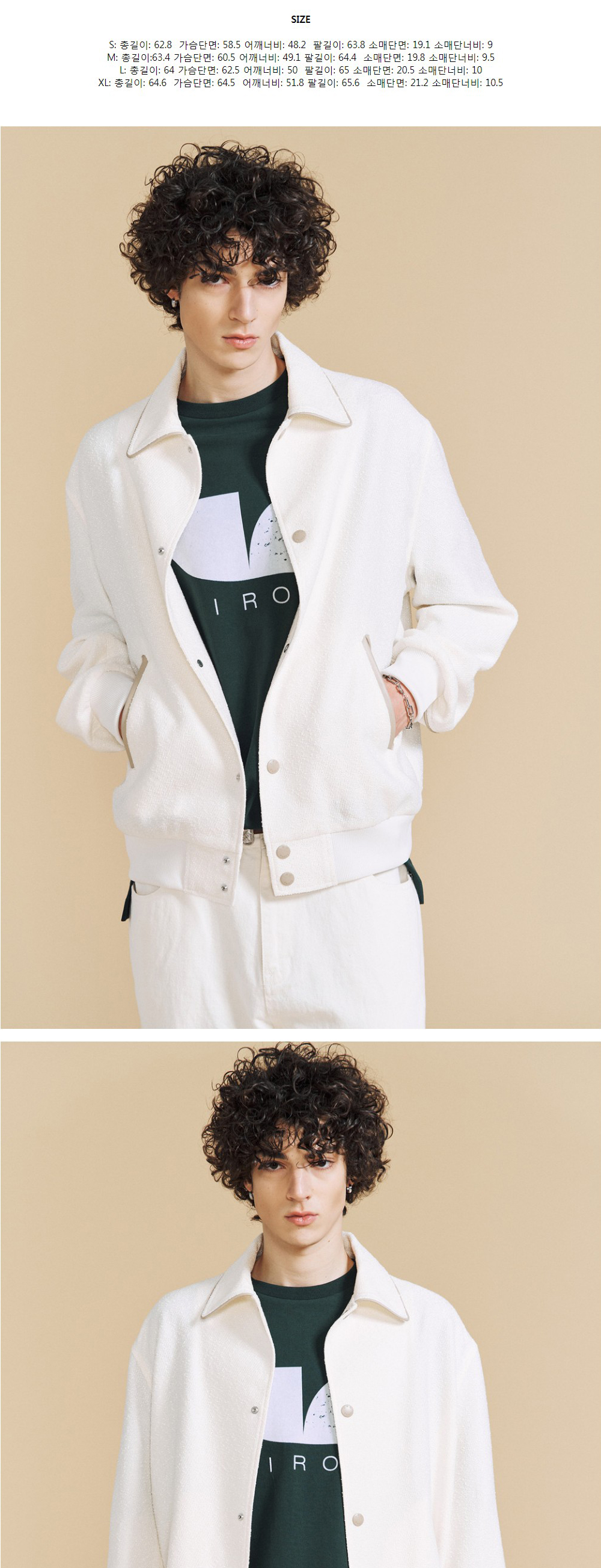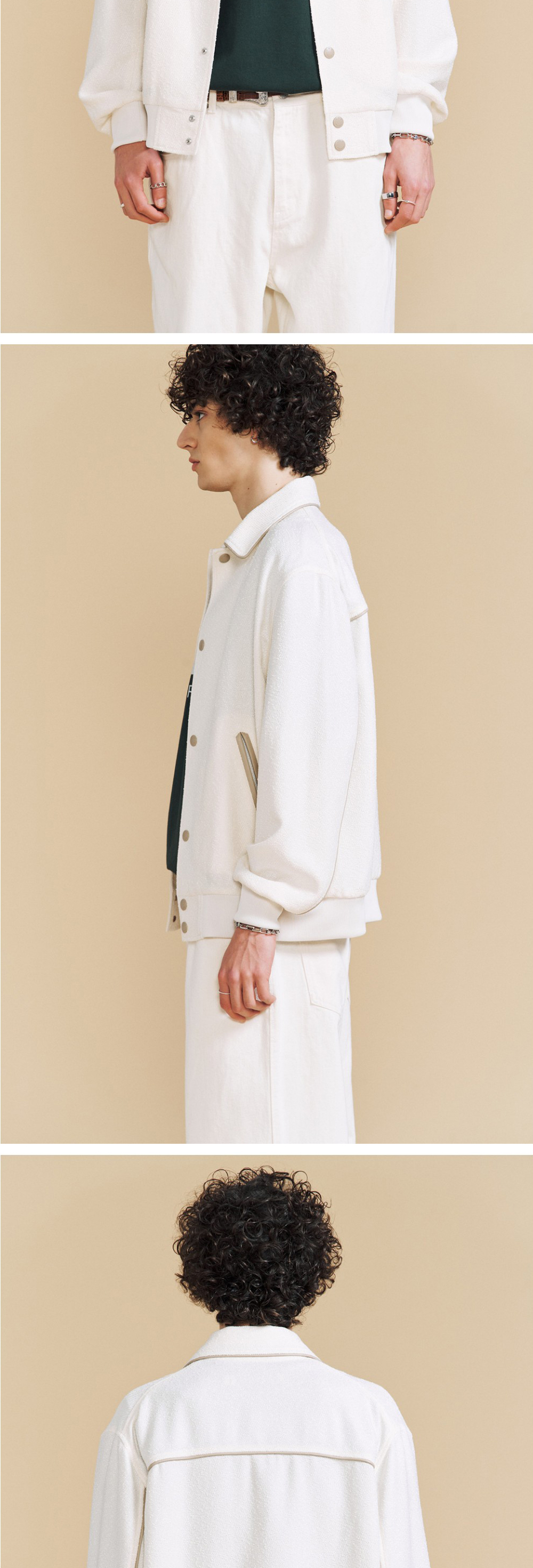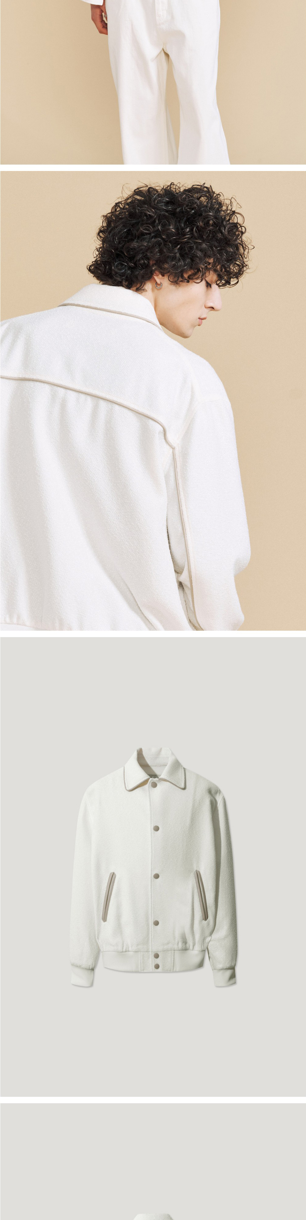 이로 레더 트리밍 바시티 자켓 아이보리