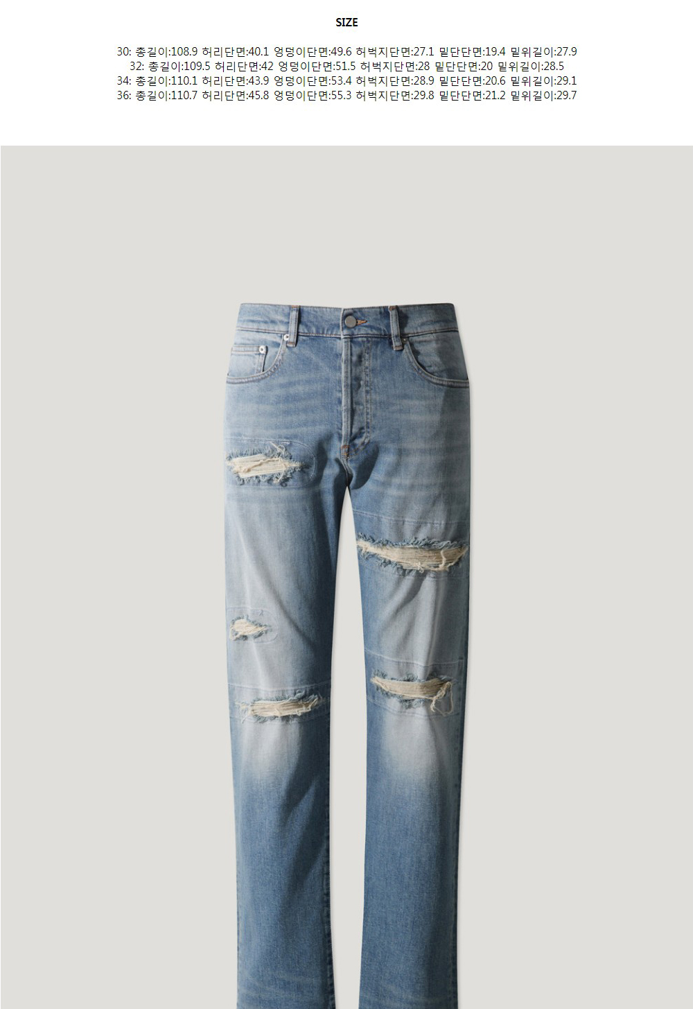 이로 데이엔 슬림 디스트레이트 데님 팬츠 블루