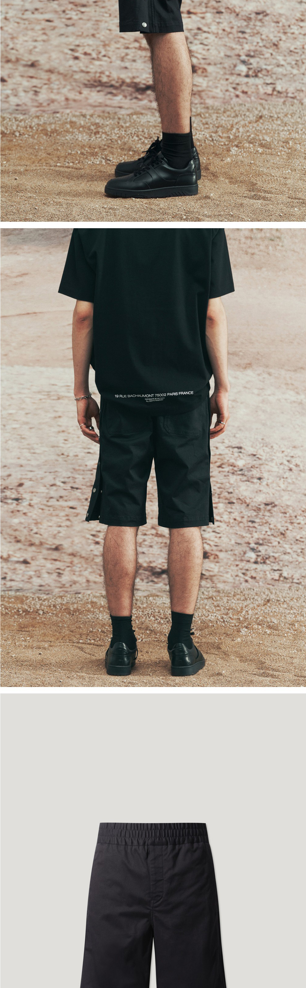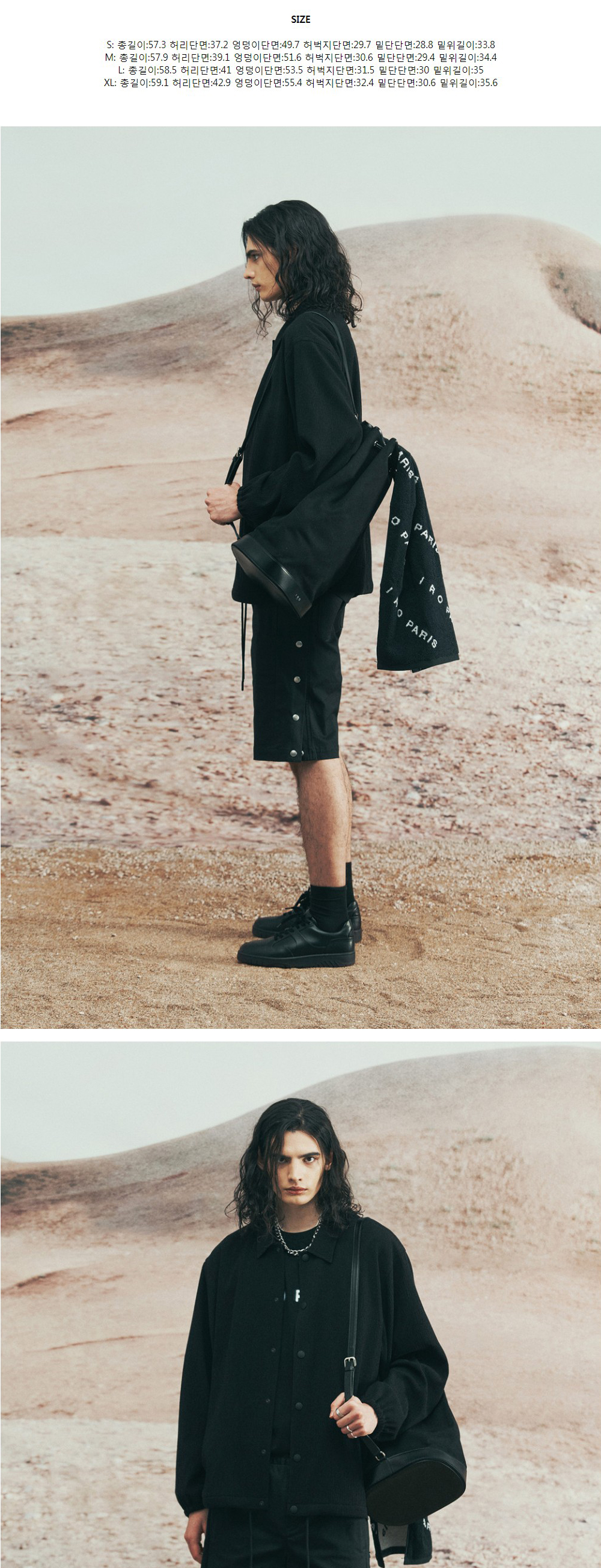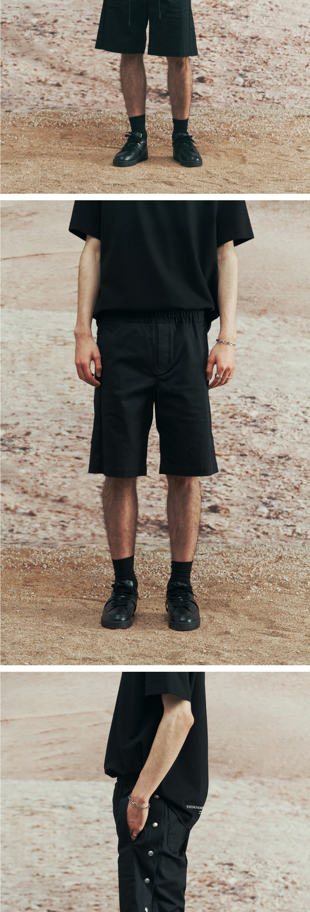 이로 잠고 코튼 사이드 스냅 쇼츠 팬츠 블랙