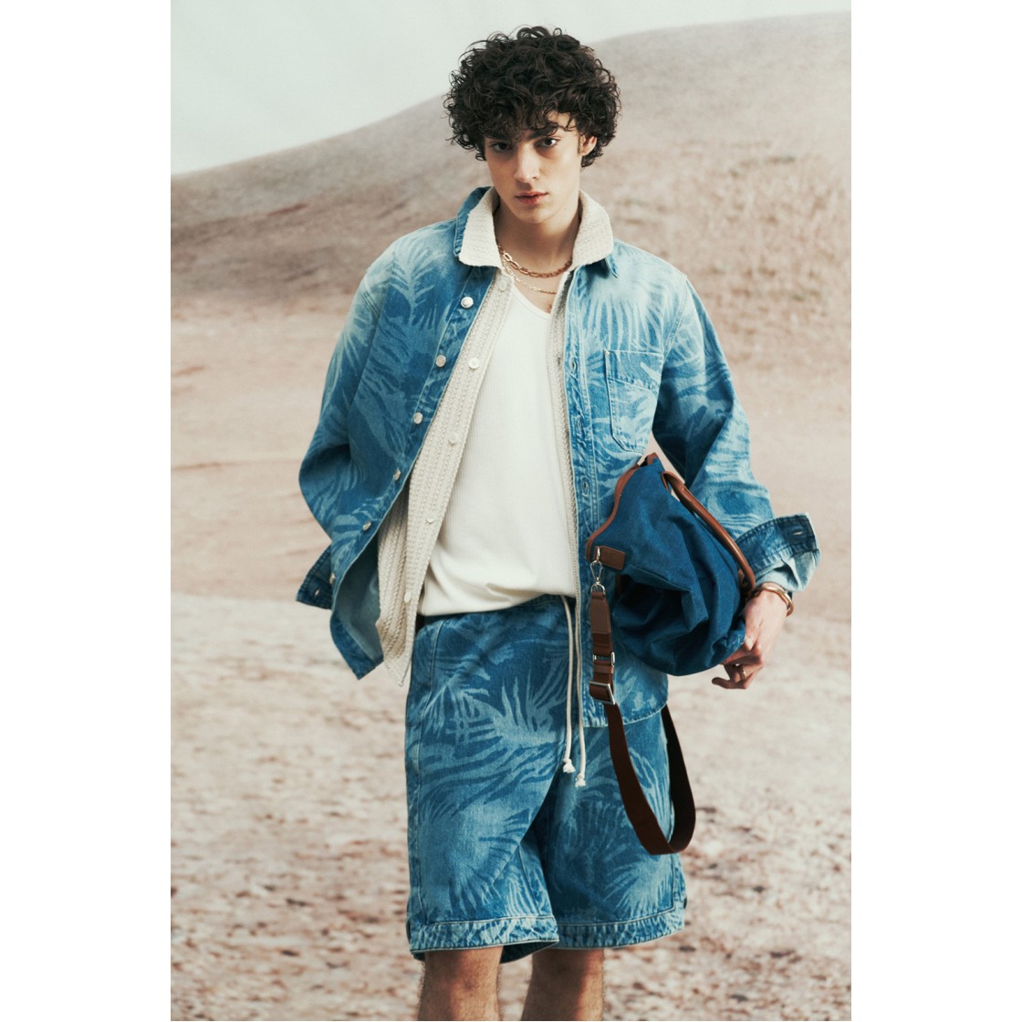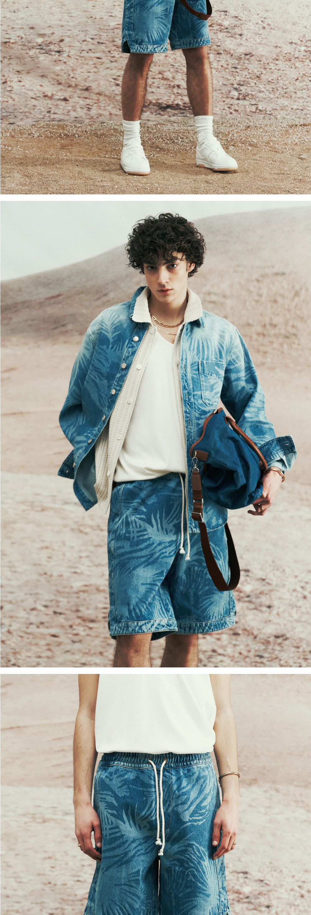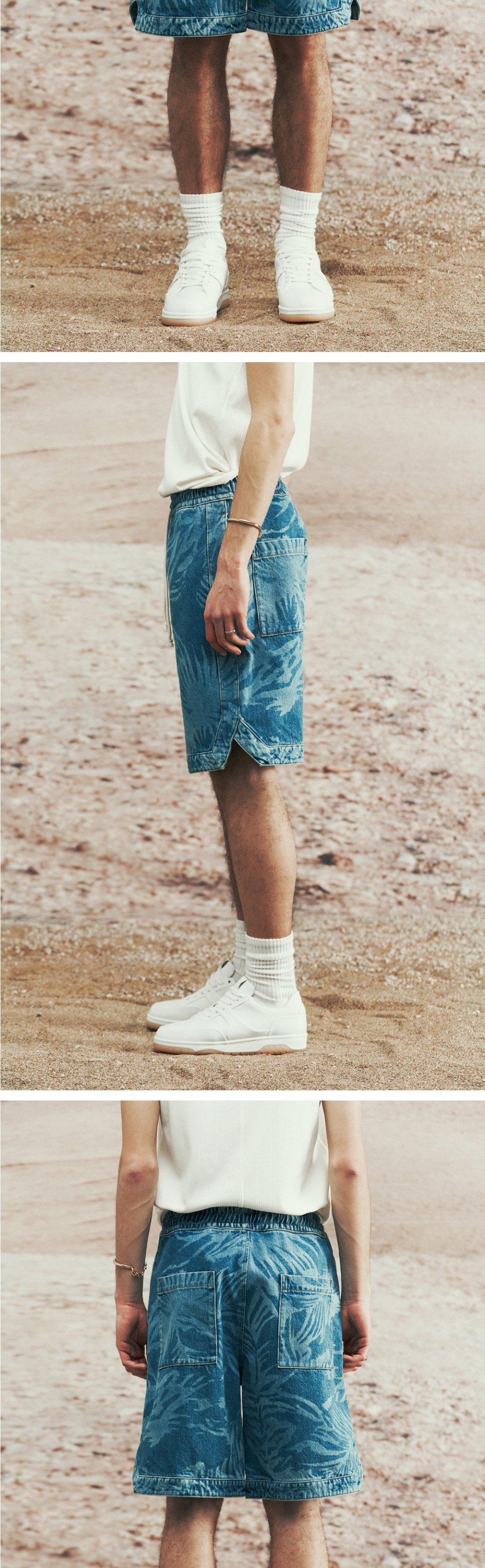이로 제이더 패턴 데님 쇼츠 팬츠 블루