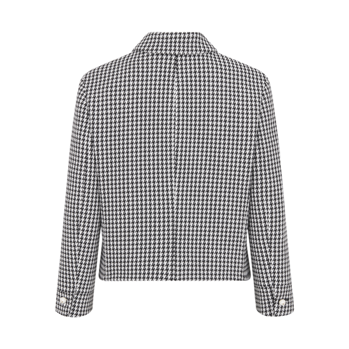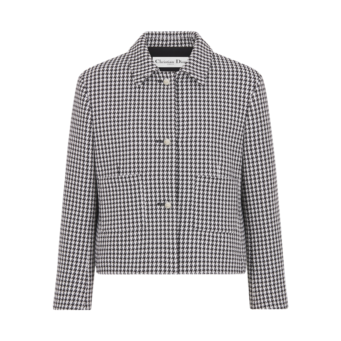(W) Dior Cropped Jacket Black White Houndstooth Wool
