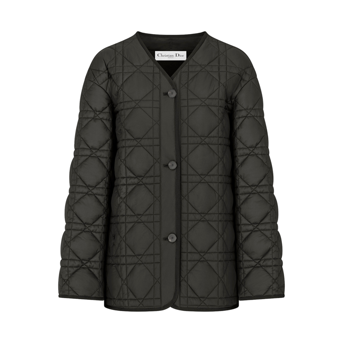 (W) Dior Macrocannage Peacot Black Quilted Technical Taffeta