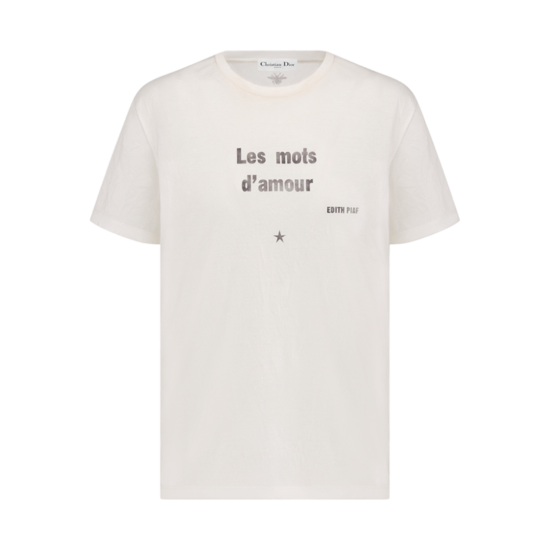 (W) Dior Les Mots D'amour T-Shirt White Technical Jersey Crinkled Effect