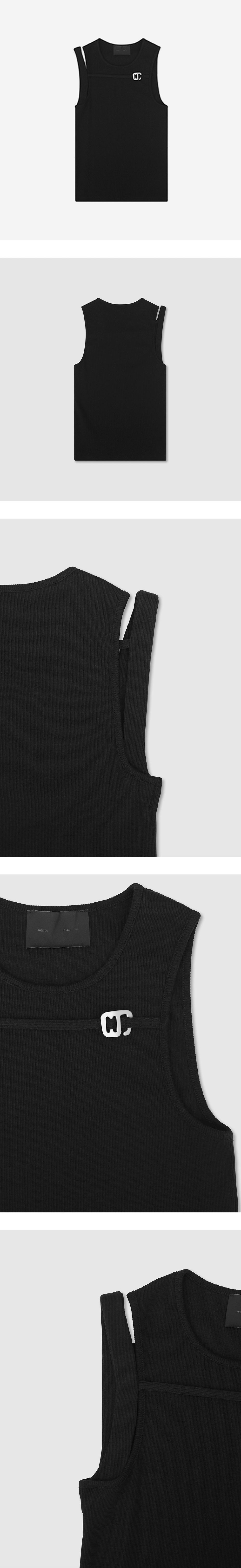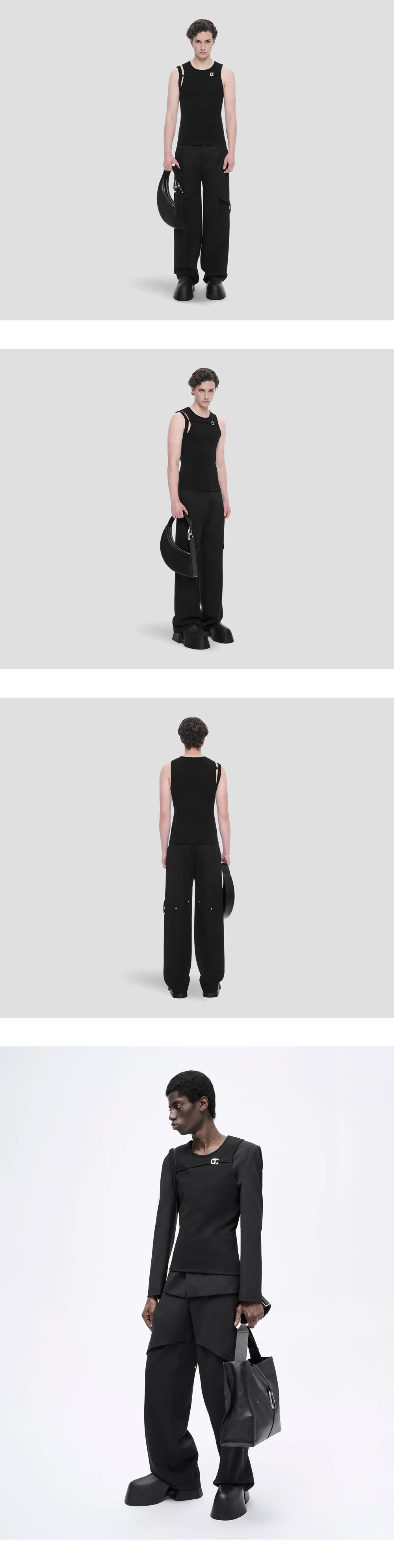 어깨와 가슴의 스트랩 디테일과 메탈 잠금장치가 돋보이는 엘리엇 에밀의 그레가리아 슬링거입니다. - 슬림핏 저지 탱크톱 - 조절 가능한 가슴 스트랩과 G-후크 잠금장치