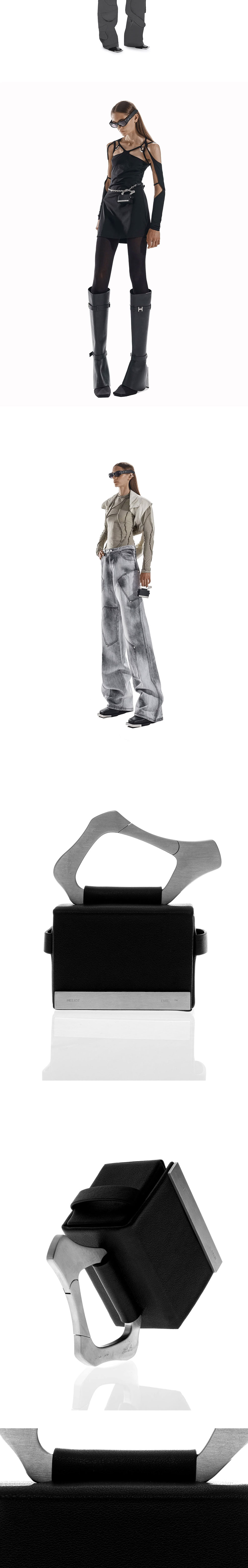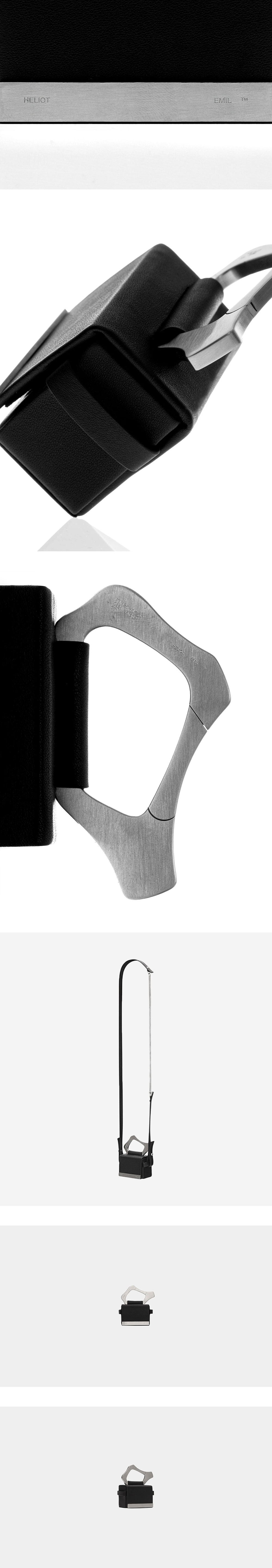 추상적인 형태의 메탈 카라비너가 특징인 엘리엇 에밀의 마이크로 박스 백입니다. - 체인이 달린 가죽 스트랩 - 엘리엇 에밀 메탈 로고 장식