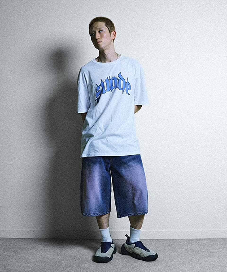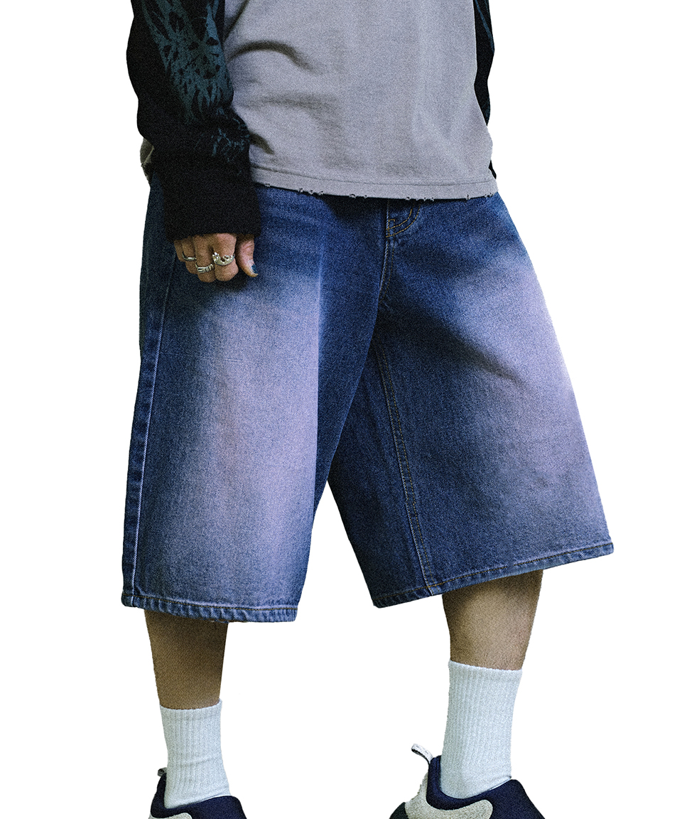 스웨이드 컬러 워시드 데님 쇼츠 퍼플