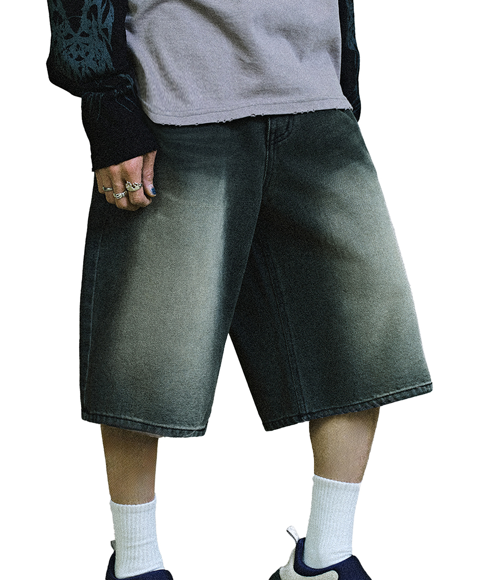 스웨이드 컬러 워시드 데님 쇼츠 블랙