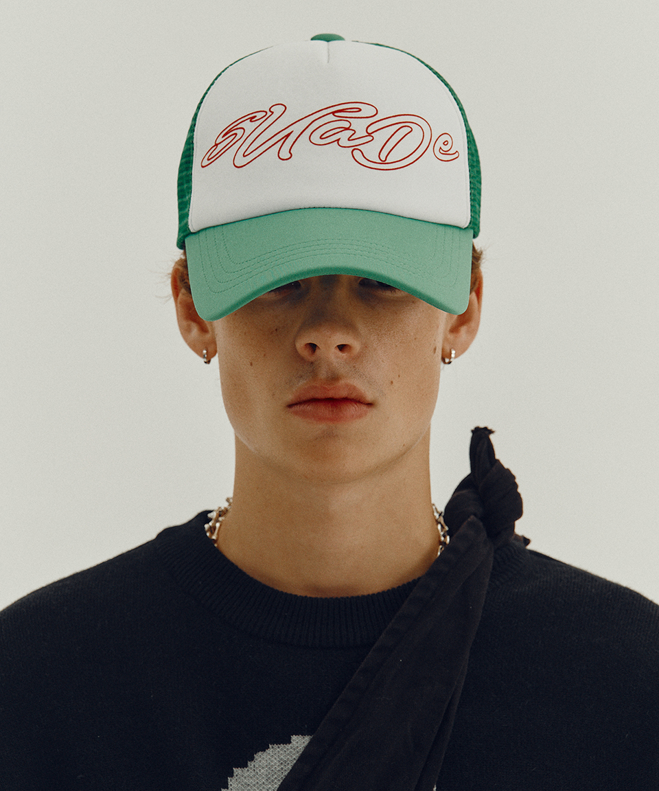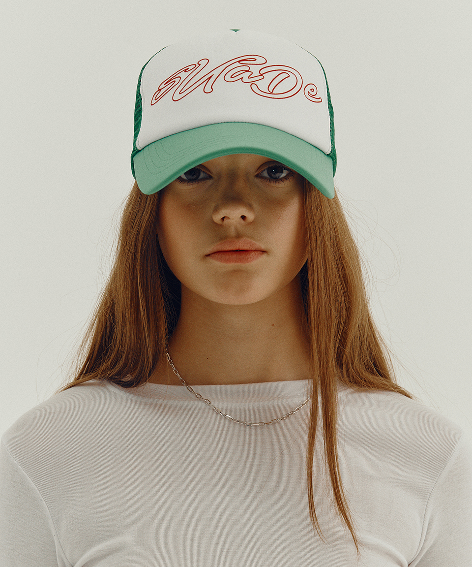 스웨이드 핸드로고 메쉬 캡 그린