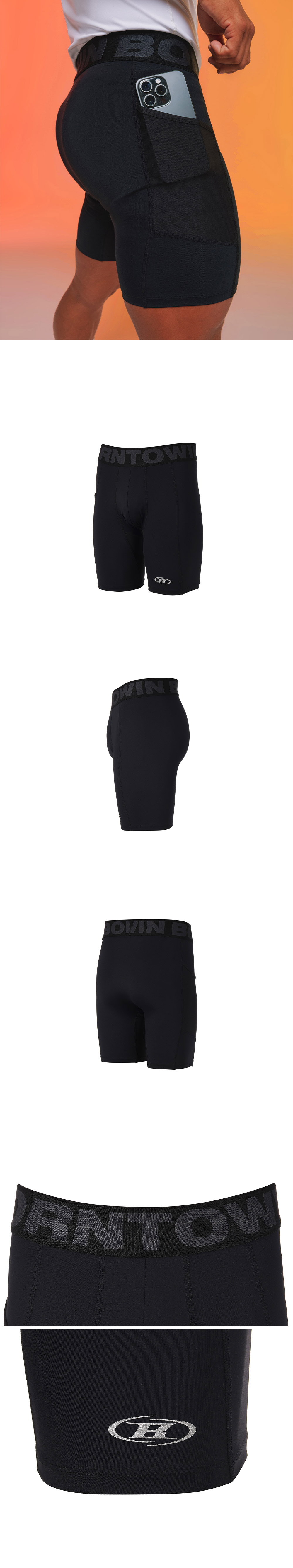 [DETAILS] * 아웃밴드 액티브 숏 레깅스 - 고신축 나일론 하이게이지 원단 - 자카드 아웃밴드 디테일 - 활용도 높은 사이드 오픈 포켓 - 전면 3M 리플렉티브 심볼 B 로고 프린팅 - 힙라인 절개 및 3M 리플렉티브 방수 지퍼 - 인심 메쉬 배색으로 우수한 통기성 Material : NYLON 75% POLYURETHANE 25% Fitting : 1 Size, 172cm, 74kg