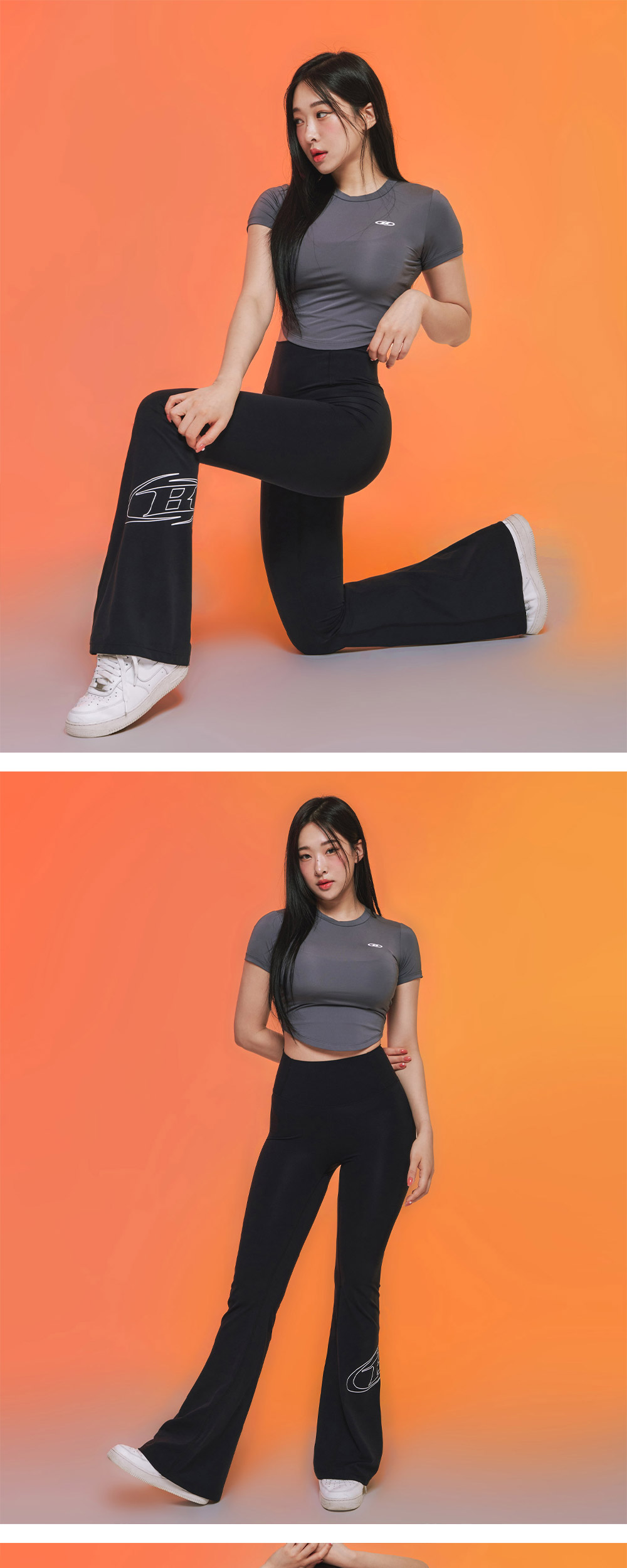 [DETAILS] * 스트로크 B 부츠컷 레깅스 - 고신축 나일론 하이게이지 원단 - 체형을 보정하는 하트 힙라인 - 후면 레터링 로고 프린팅 - 아웃라인 심볼 B 로고 프린팅 - 트렌디한 부츠컷 스타일 Material : NYLON 80% POLYURETHANE 20% Fitting : 3 Size, 171cm, 57kg