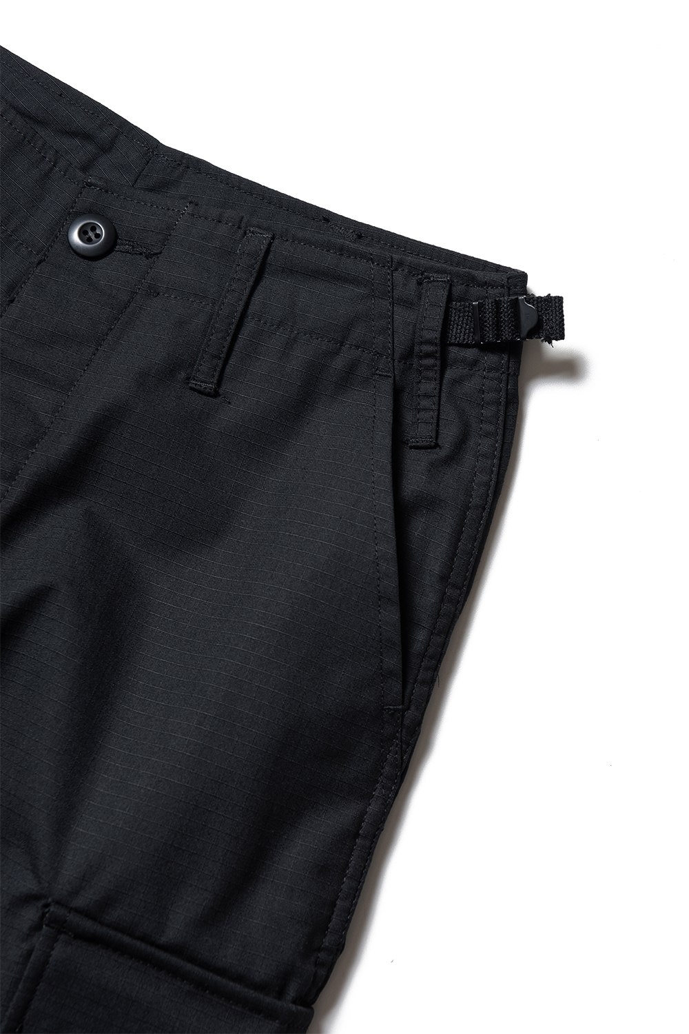 BDU Ripstop Short Pants - Black 'BDU'는 'Battle Dress Uniform' 약어입니다. 1960년대 초반 트로피칼 퍼티그 팬츠의 영향을 받은 EDRL 팬츠를 1980년대 채용 한 컴뱃 팬츠입니다. 밑위의 실루엣이 넉넉하며, 허벅지 부터 밑단까지 슬림하게 제작된 것이 특징입니다. 베트남전부터 사용된 립스탑 소재로 제작하여 견고하면서도 통기성이 좋아, 사계절 착용 가능한 아이템입니다. 프론트는 버튼 플라이로 구성되어 있으며, 허리부분의 사이즈 조절 장치로 1-2cm정도 사이즈를 작게 조절 가능합니다. 카고를 포함한 6포켓으로 다방면에 활용 가능한 아이템입니다. 착용시 'XS'이 '28-30', 'S'가 '30-32', 'M'이 '33-34' 'L'이 '35'입니다. * 해당 제품은 BDU Ripstop Pants 반바지 버전이기에 S/M 과 달리 L/XL 상품은 제품 하단에 플리츠 디테일을 가지고 있습니다.