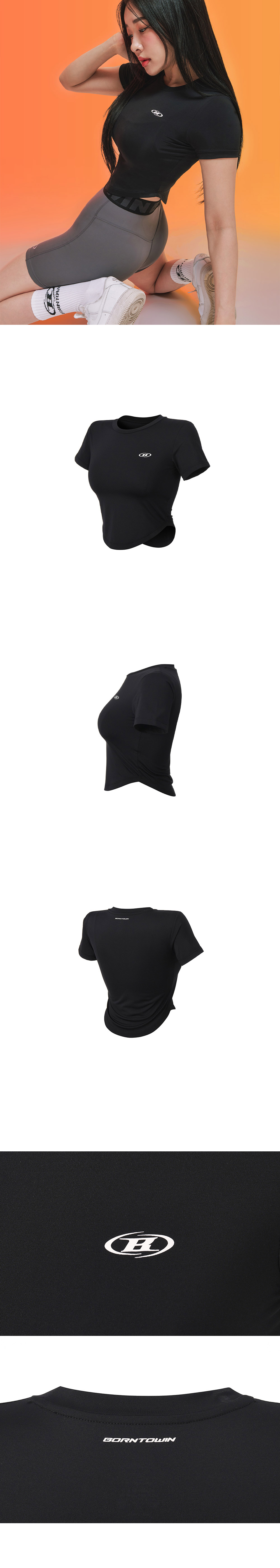 본투윈 퀵 드라이 심볼 B 크롭 티셔츠 블랙