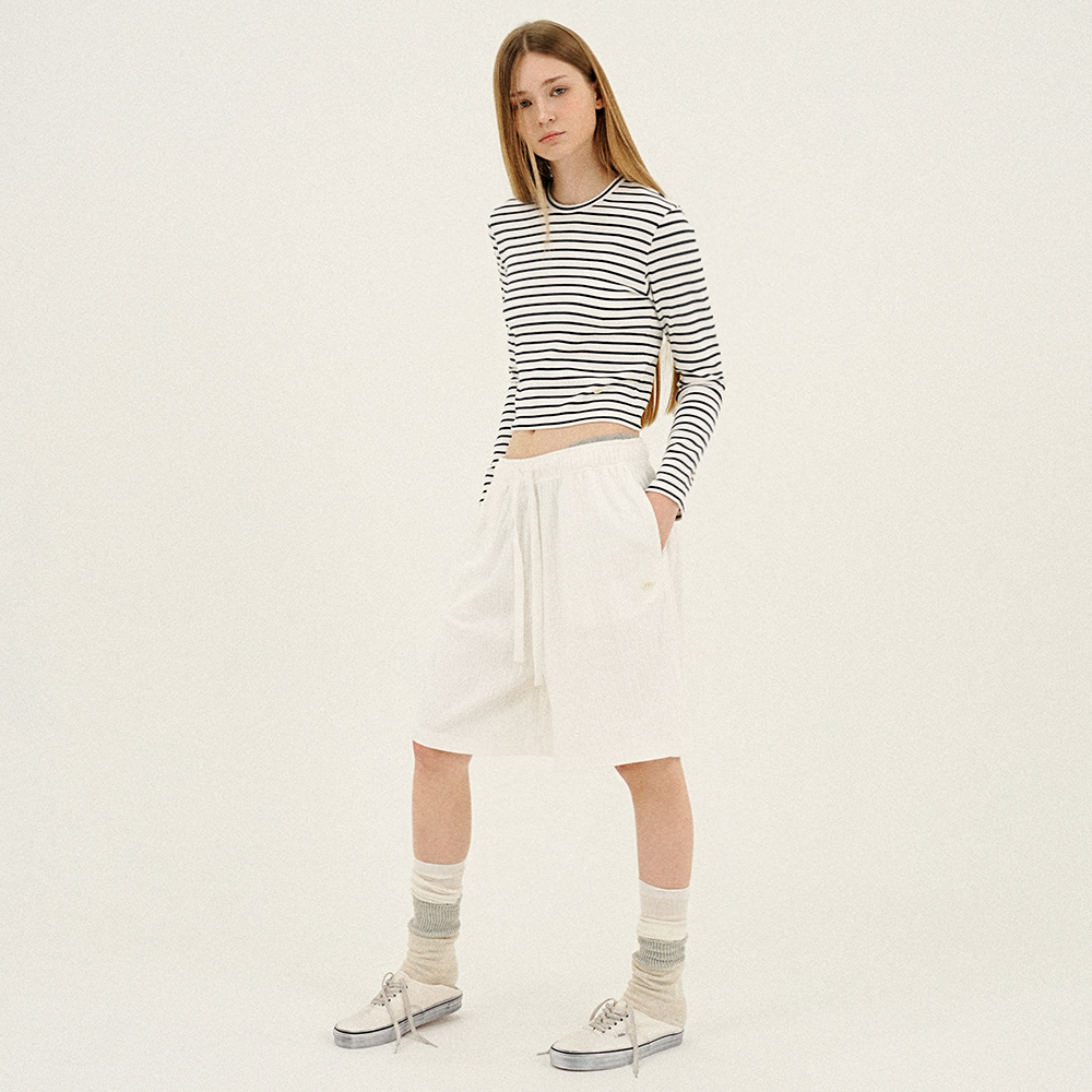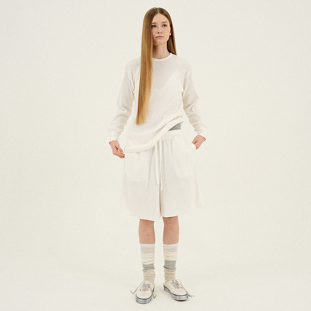 엘엘엘 디자인 스튜디오 포인트텔 로우 라이즈 버뮤다 쇼츠 밀크 화이트