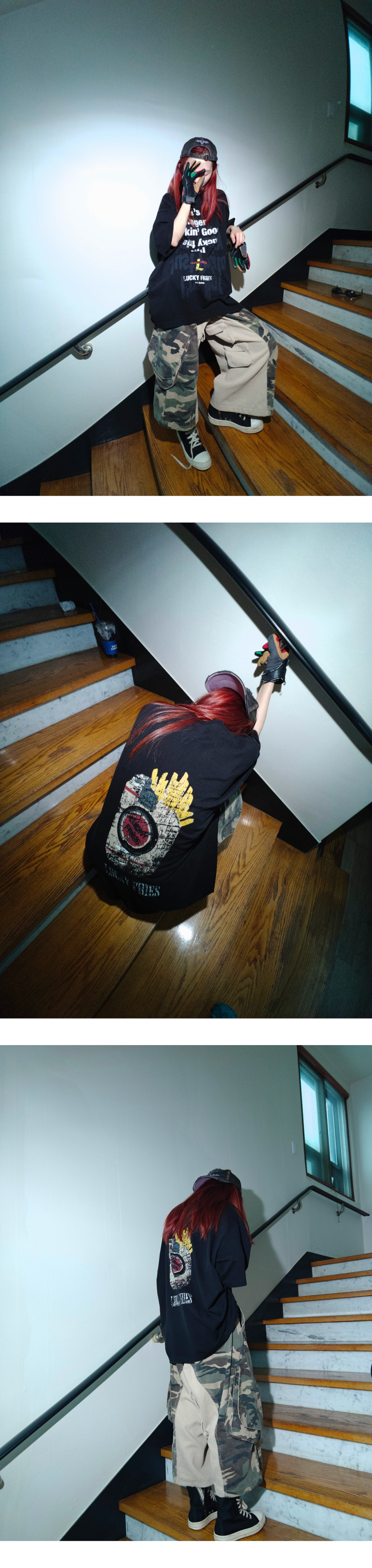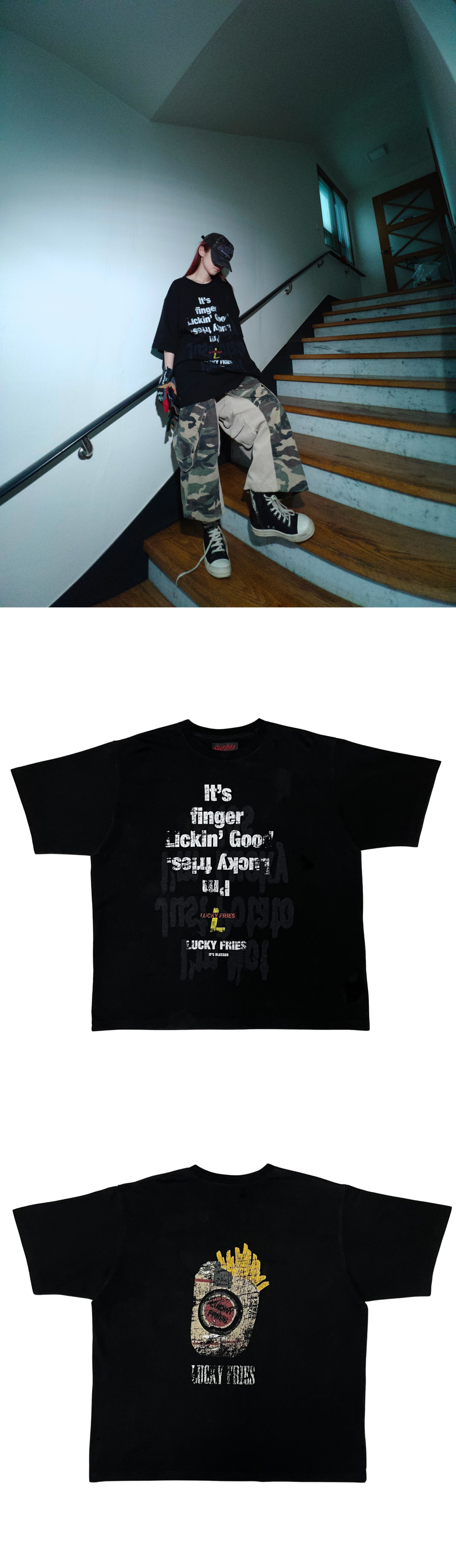 [예약배송] Ourpas Lucky Fries T Shirts Black