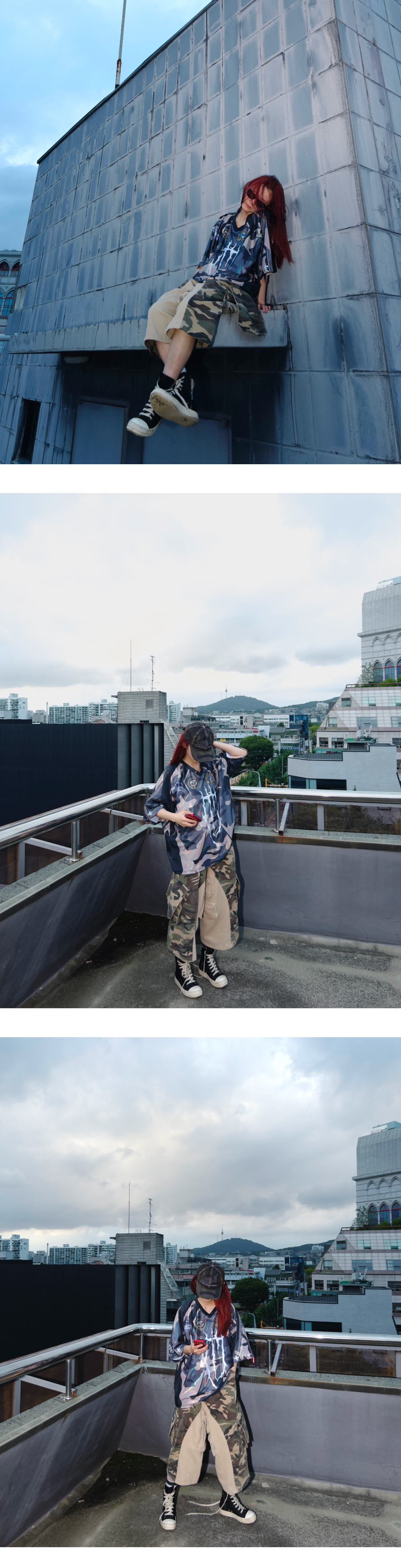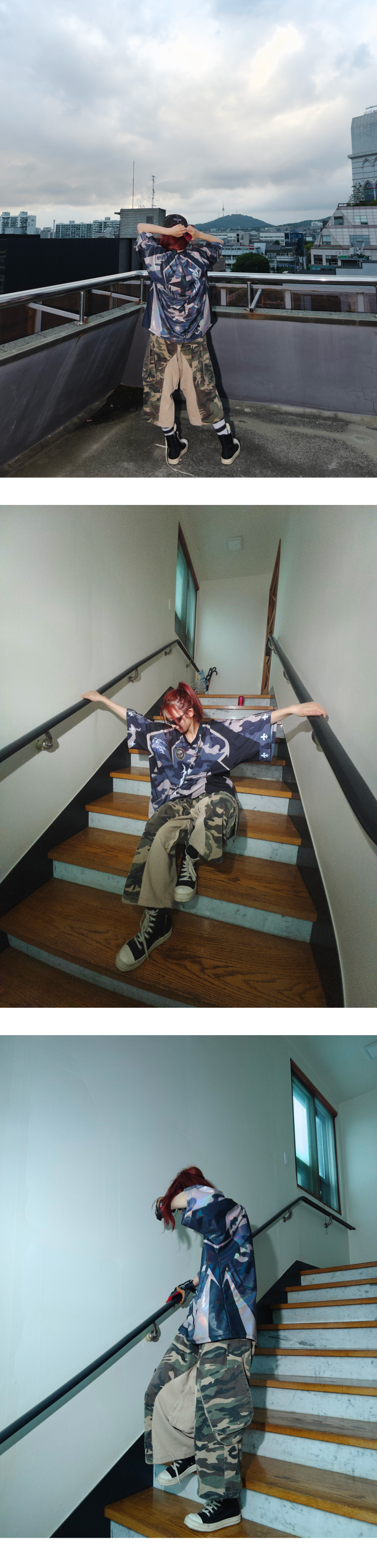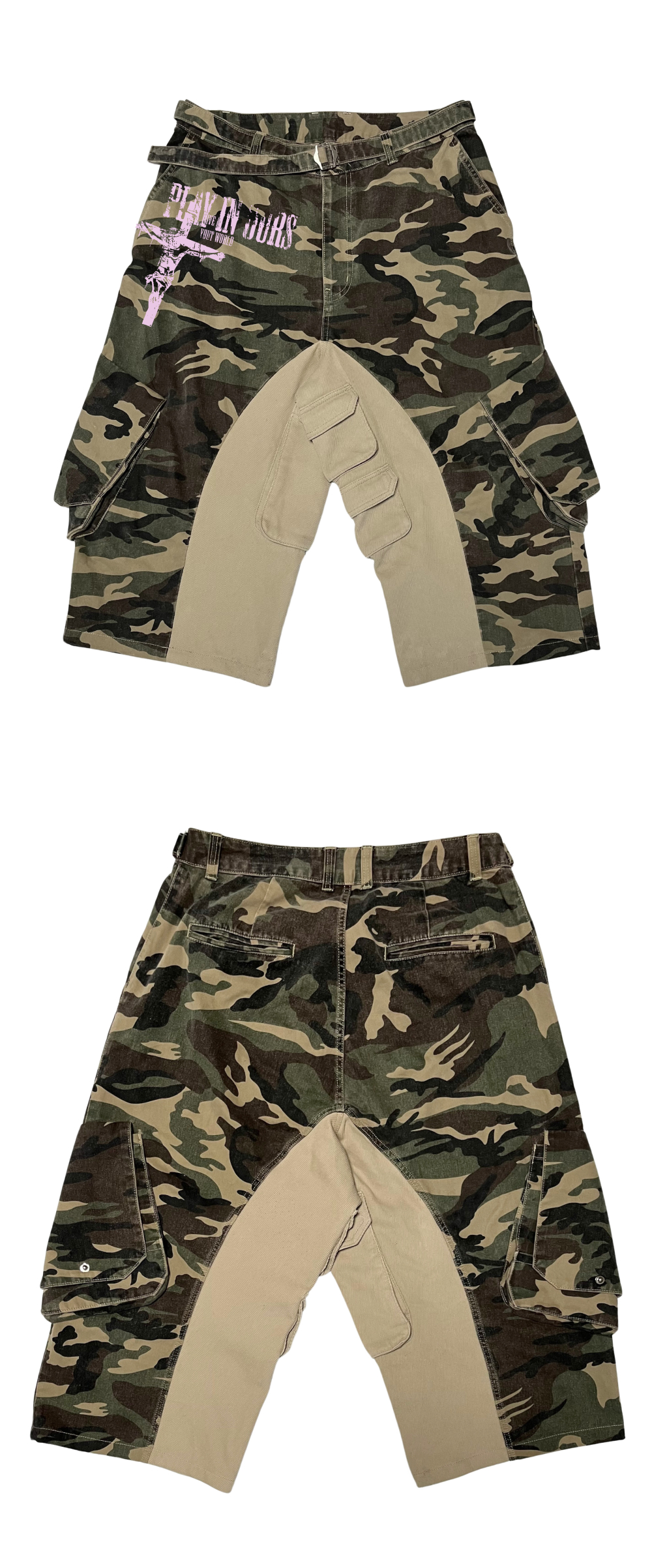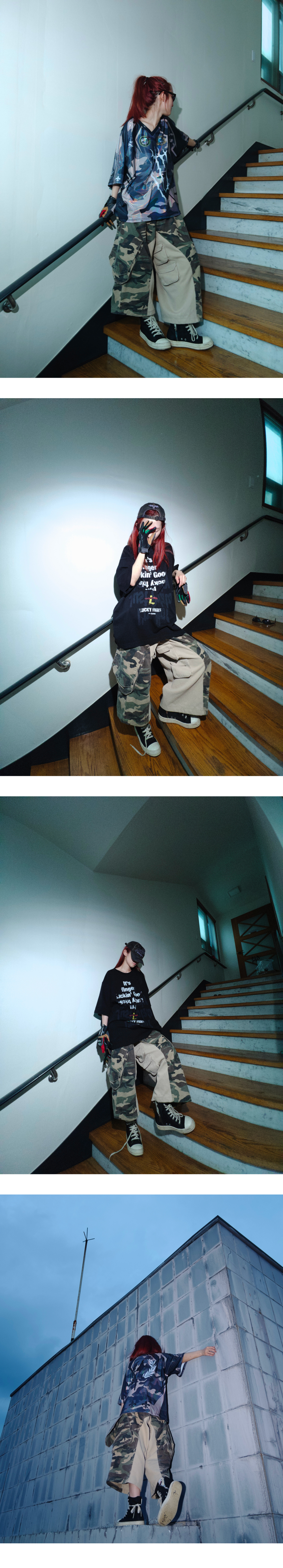[ 발매 일정] 해당 상품은 7월 23일 저녁 6시에 발매 됩니다. [ 배송 안내] 본 상품은 8월 22일 예약배송으로 진행 됩니다. [ 상품 안내] - 빈티지 가공이 들어간 카모플라쥬 원단 사용 - 오버핏의 버뮤다 핏 디자인 - 포켓 9개 - 웰트, 슬래시 및 플랩 포켓 - 허리 조절용 어드저스트