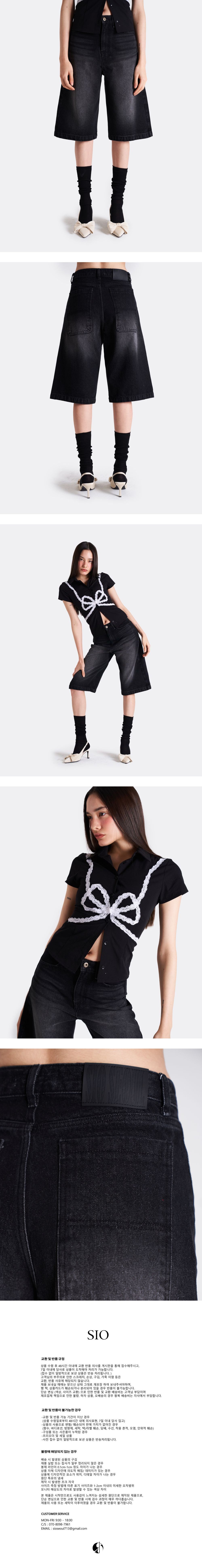 심플한 디자인의 워싱이 들어간 미디 웨이스트 하프 데님 팬츠. 시오 서울의 첫 데님 제품으로 짧은 탑, 루즈한 상의 모두에 어울리는 디자인으로 데일리하게 착용할 수 있게 제작한 제품입니다. MODEL SIZE HEIGHT 168cm BUST 84cm WAIST 64cm HIPS 87cm