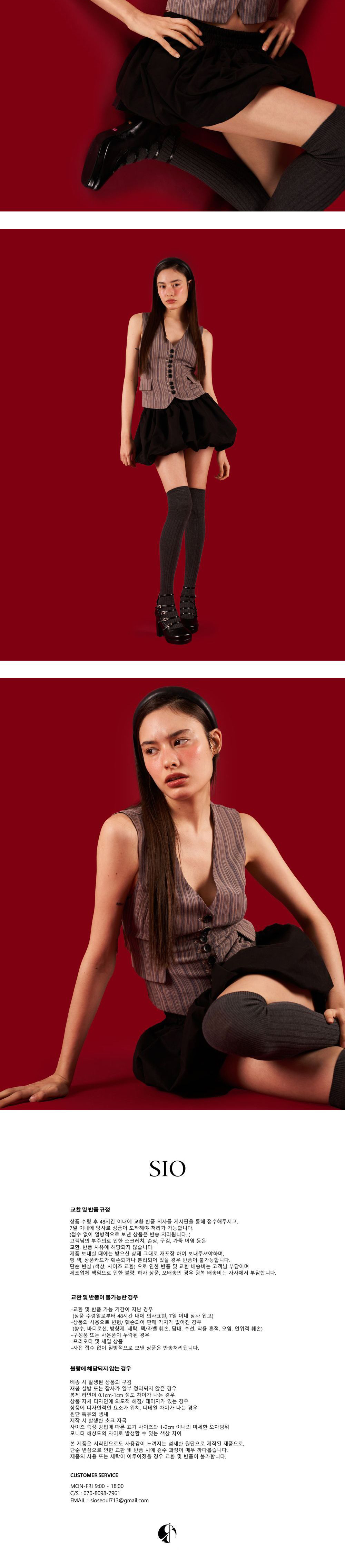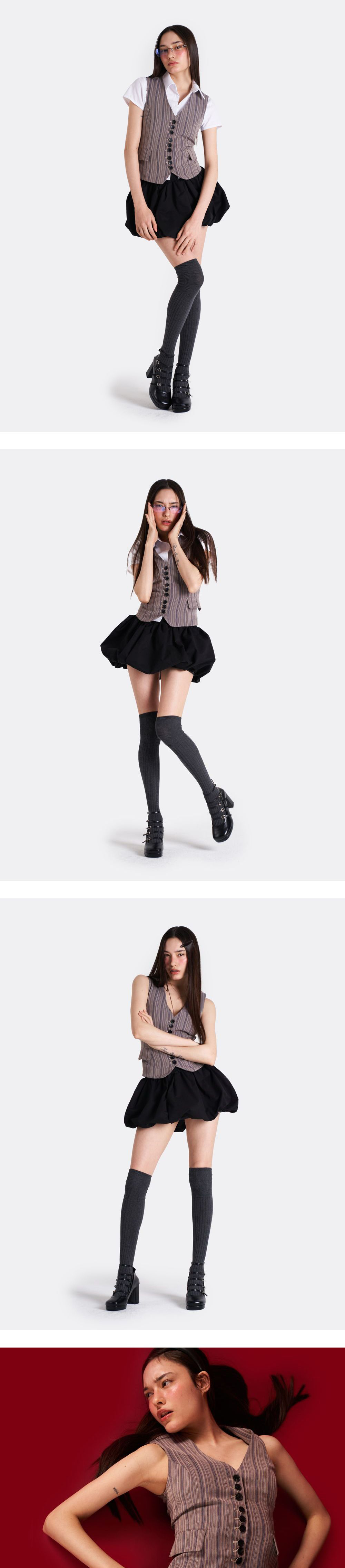 스트라이프 패턴의 쓰리 버튼 포인트의 베스트. 단독으로 또는 셔츠,탑과 레이어드해서 착용하기 좋은 베스트입니다. 프린세스 라인에 다트를 잡아 바디 실루엣을 더 잘보여주는 제품입니다. MODEL SIZE HEIGHT 168cm BUST 84cm WAIST 64cm HIPS 87cm